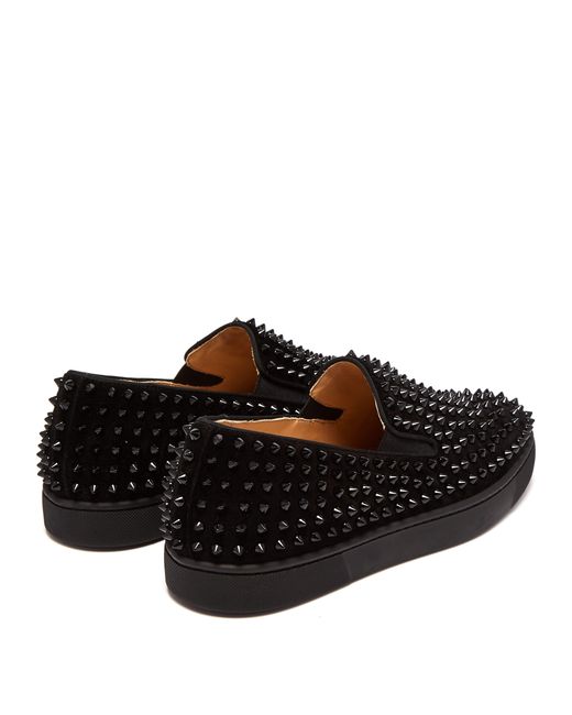 Quintessence même de l'élégance propre à Christian Louboutin, ces baskets en daim noir Roller-Boat donneront un caractère unique à une multitude de tenues. Elles dessinent une silhouette basse recouverte de picots brillants et bordée de liserés en gros-grain. La paire s'accompagne de bords élastiques et dévoilera la semelle rouge iconique de la maison à chacun de vos pas. Elles sont conformes à la taille indiquée.