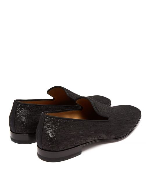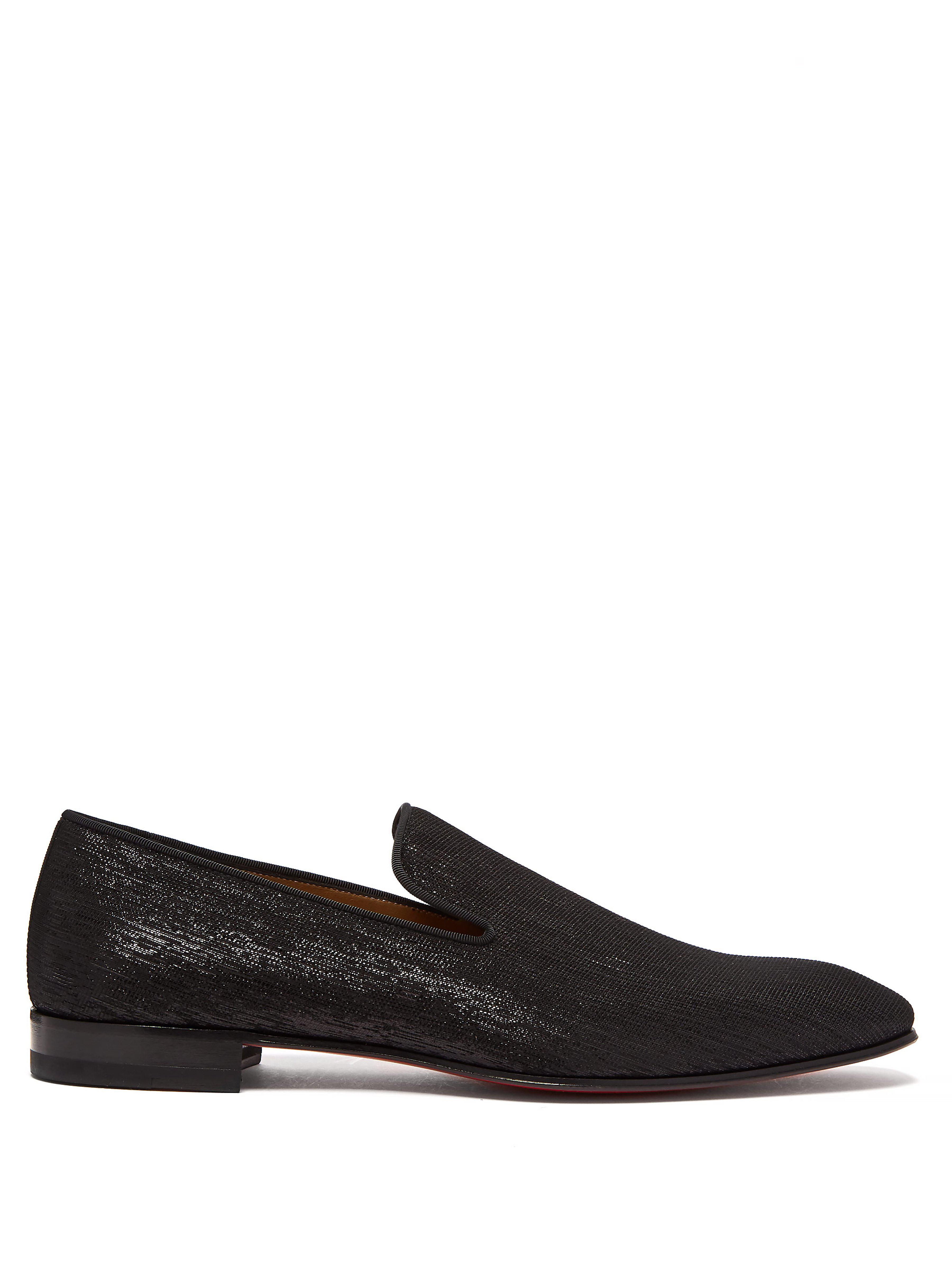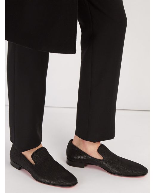 Christian Louboutin revisite ses célèbres mocassins habillés Dandelion en proposant cette version à bout en amande réalisée en cuir et recouverte de shantung noir. Leur silhouette vénitienne traditionnelle présente une empeigne sans coutures élégante et est ponctuée de fibres métallisées pour une finition brillante. Ils sont conformes à la pointure indiquée. Coloris : noir