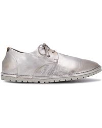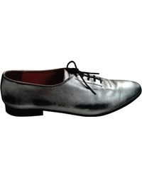 Chaussures par Jeffery West, Un look tout doux de haut en bas, Fermeture par lacets, Effet vieilli, Bout pointu, Talon cubain. Basée à Northampton, berceau historique anglais de la cordonnerie, Jeffery West propose des chaussures qui ne manquent pas de style. Notre sélection comprend des cuirs texturés et ultra brillants sur des chaussures derby, des bottines chelsea et des mocassins, idéal pour accompagner des tenues workwear tout en sobriété. Pour un look un peu plus sauvage, optez pour des finis métallisés, des squelettes estampés et des finitions cloutées. Après tout, tout est une question de détails. Argent/ cordon/ cuir/ or. Coloris : métallisé