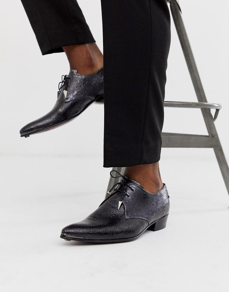 Adamant - Chaussures à talon cubain effet craquelé - Argenté homme de coloris métallisé