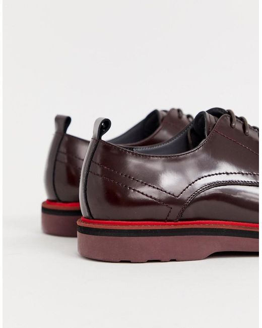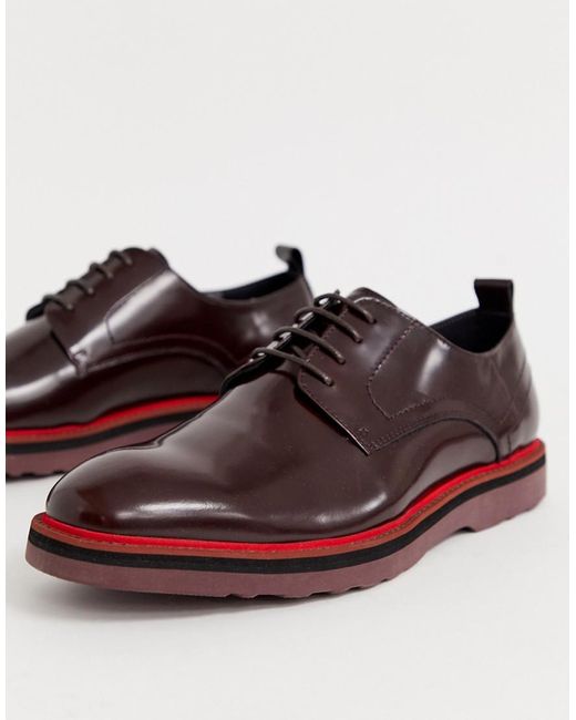 Chaussures en cuir ultra brillant à lacets avec semelle épaisse homme de coloris marron