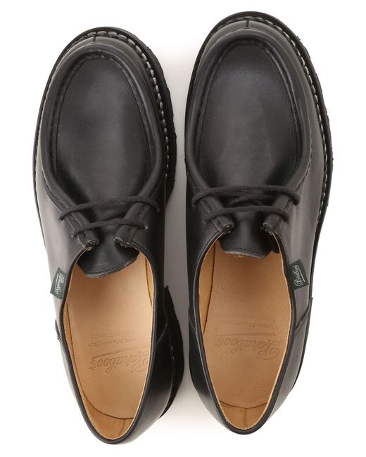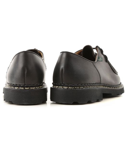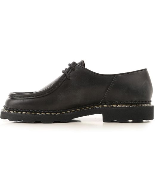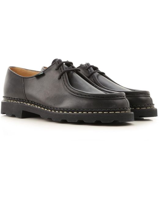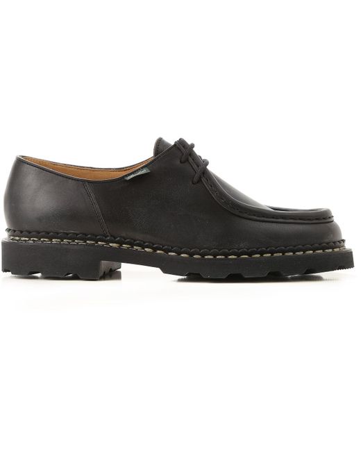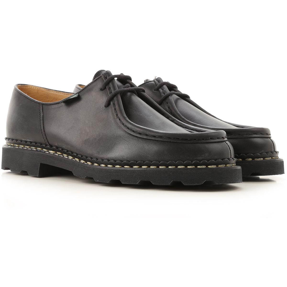 Noir. Automne - Hiver 2019/20.Made in Italy. Bout Rond. Détails Points de Broderie. Logo sur le Côté. Semelle en Caoutchouc. Cuir. Chaussures Homme: Paraboot Chaussure à Lacets Homme. Oxfords. Derbies et Richelieu. Lacets. Coloris : noir