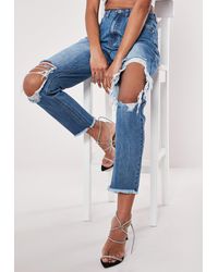 Jean mom à taille haute - Bleu