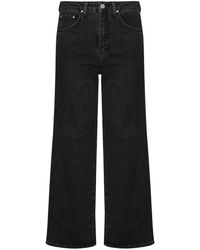 Jean Évasé En Denim Taille Haute "le Crop" - Gris