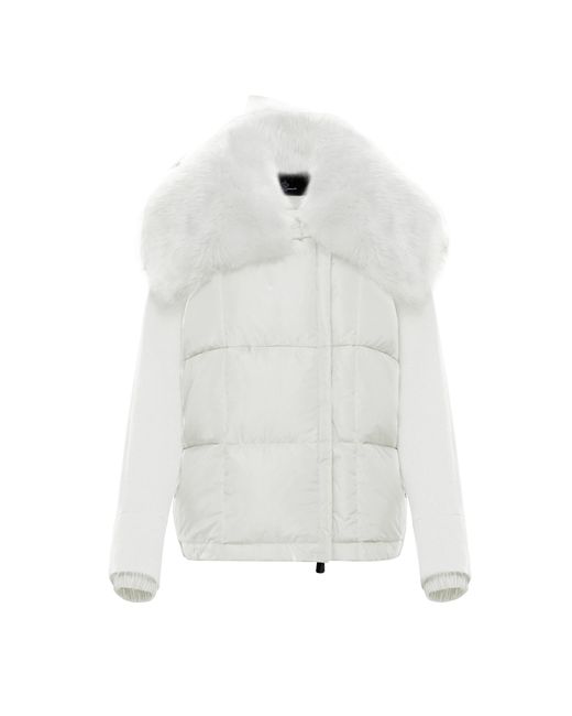 Laine mélangée et cachemire doublé en micro-faille de nylon avec garnissage en plumes, pour ce cardigan en tricot pour femme, avec col en renard. Un modèle qui allie à un design confortable mais raffiné les hautes performances techniques du tissu. Compléter avec le pantalon sport coordonné pour un total look décontracté, recherché et facile à porter. Tissu technique. Maille. Applications en fourrure. Logo. Maille semi-légère. Manches longues. Poignets stretch. Fermeture avec zip et boutons-pressions. Fermeture sur l'avant. Deux poches. Intérieur en plumes d'oie. 100% polyester, laine, cachemire, Polyamide, Fourrure de renard. Coloris : noir