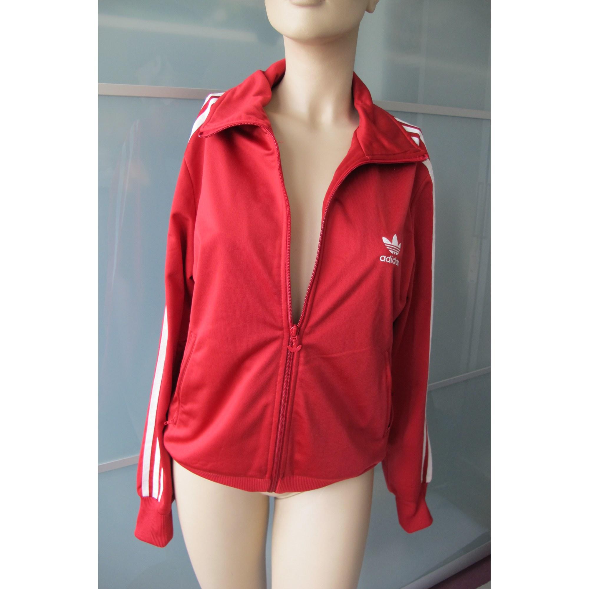 Haut de survêtement ADIDAS - Matière : polyester - Couleur : rouge - Taille : 44 (XL/XXL, T5) - Etat : occasion. Coloris : rouge