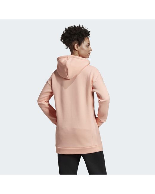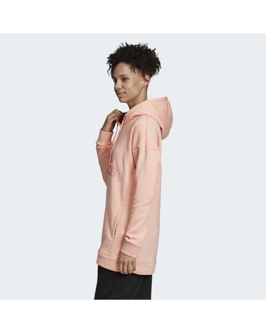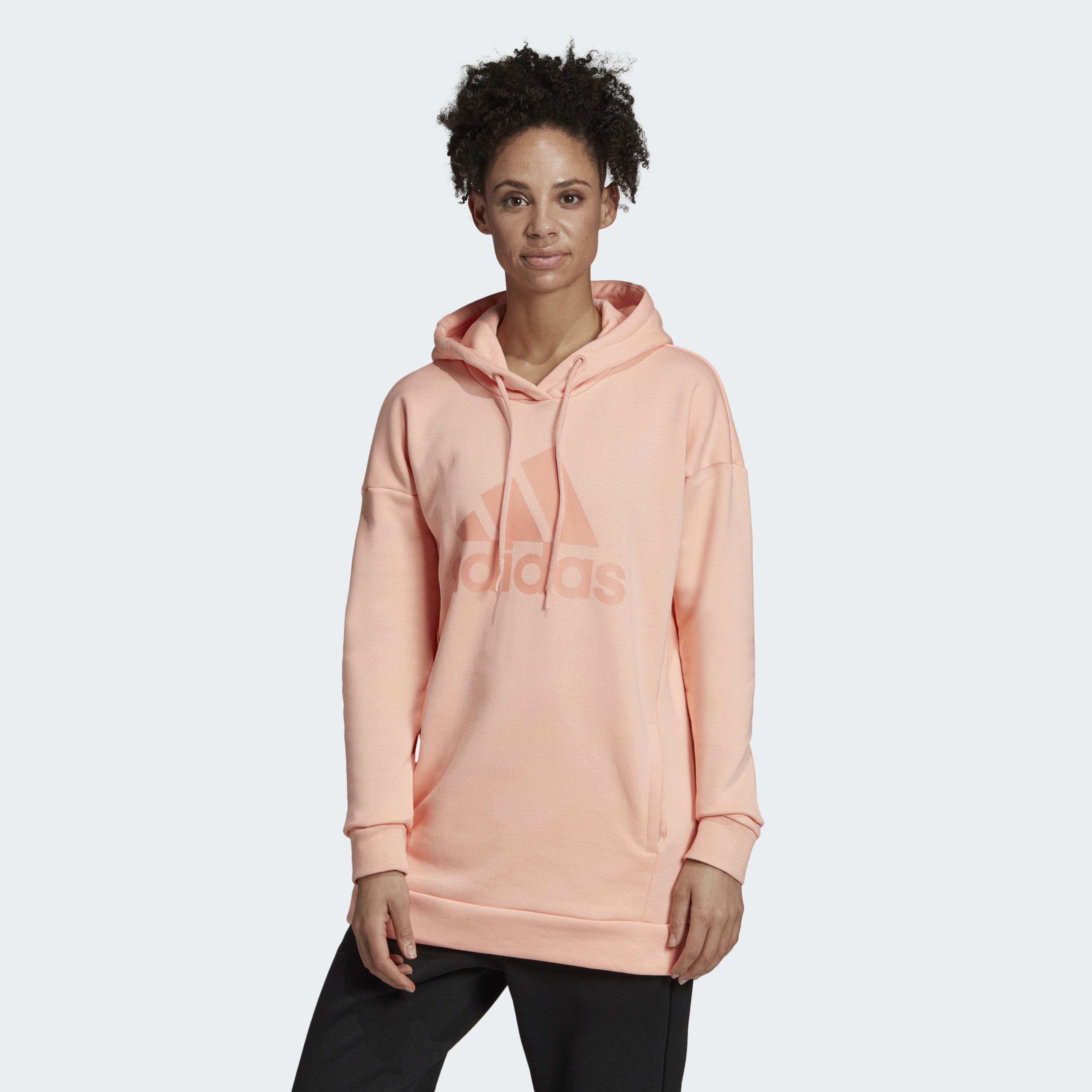Enfile ce sweat-shirt à capuche pour aller à la salle de sport ou sortir entre amis. Il est conçu en molleton confortable avec une coupe longue décontractée. La touche sport authentique : le grand logo adidas « Badge of Sport » à l'avant. Coupe ample au niveau des épaules et de la poitrine : grande liberté de mouvement. Col croisé. Coupe longue. Manches longues avec poignets côtelés. Emmanchures tombantes. Molleton 77 % coton / 23 % polyester recyclé. Poches avant passepoilées. Capuche oversize à cordon de serrage. Base côtelée. Cette veste à capuche est conçue en polyester recyclé pour préserver les ressources naturelles et diminuer les émissions carbone. Adidas s'engage avec « Better Cotton Initiative » pour améliorer les conditions de production mondiale de coton. Coloris : rose