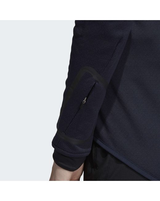 Quipe-toi pour affronter les conditions les plus extrêmes. Conçue en molleton isolant, cette veste est une couche intermédiaire parfaite offrant légèreté et respirabilité pour un maximum de confort. Sa capuche style passe-montagne est munie d'une visière intégrée et d'un élastique pour l'ajuster. Coupe athlétique. Manches longues. Molleton 54 % polyester recyclé / 46 % polyester. Doublure en molleton épais. Zip sur toute la longueur. Capuche ajustable style passe-montagne. Poches avant zippées. Poche sur la manche. Coupe plus longue à l'arrière. Isolation Climalite chaude et légère. Cette veste est confectionnée en polyester recyclé pour préserver les ressources de la planète et réduire les émissions carbone. Coloris : bleu