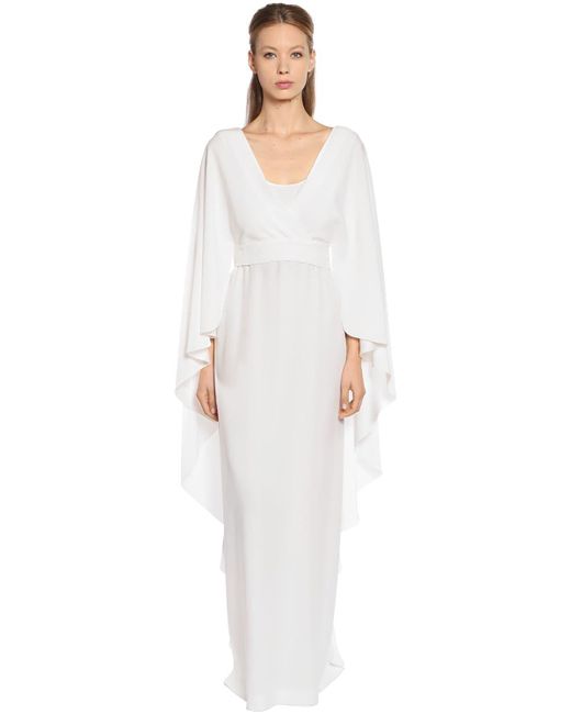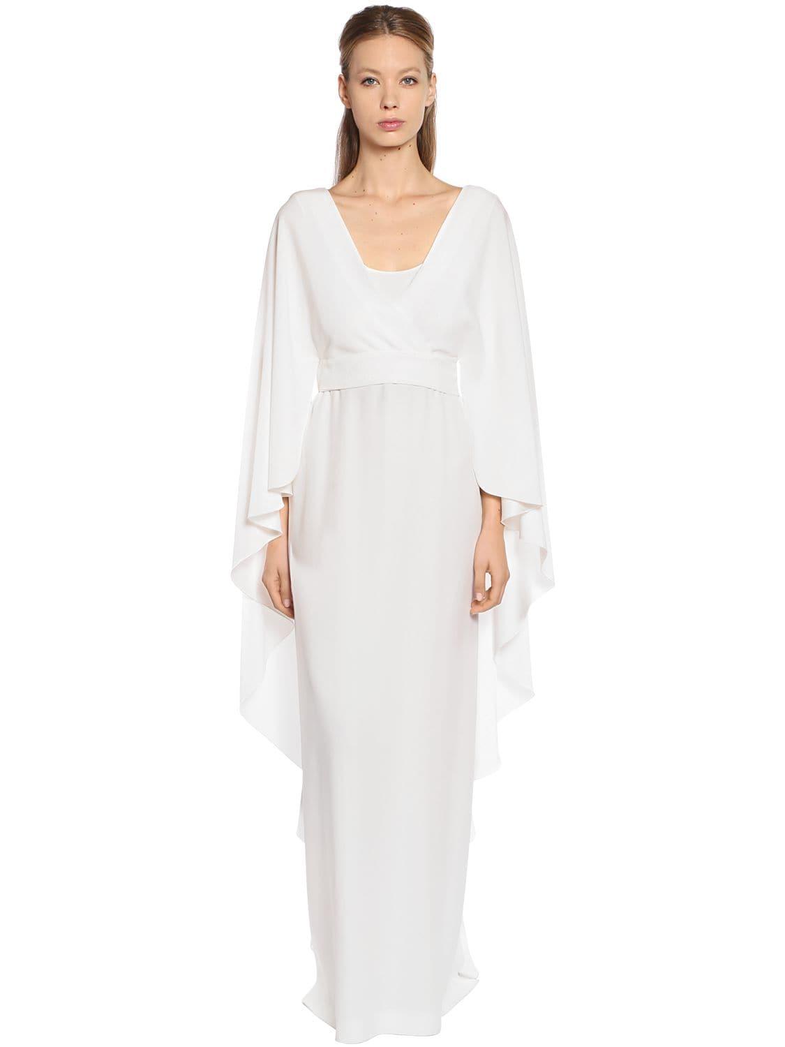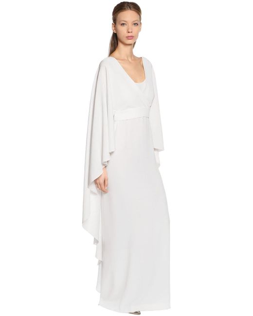 Robe Longue En Cady Et Manches Évasées femme de coloris blanc