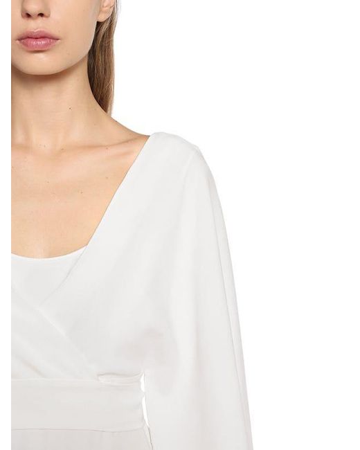Col en v. manches extra longues évasées. Ceinture à nouer assortie incluse. Parties du haut se superposant. Fond de robe non amovible. Taille du modèle: 40. 74%ac26%vi. Coloris : blanc