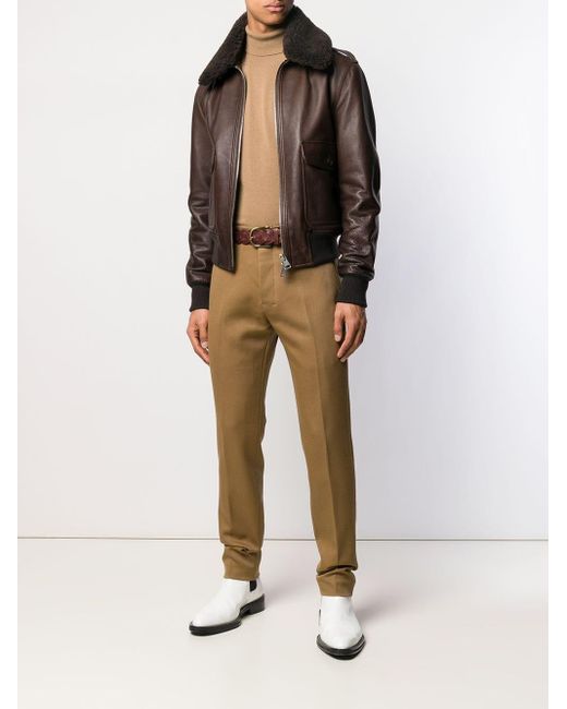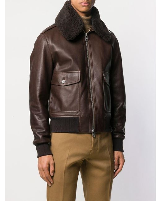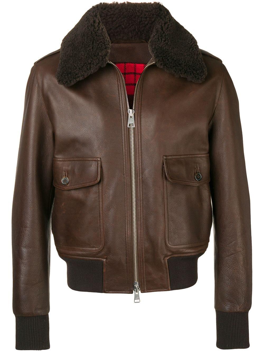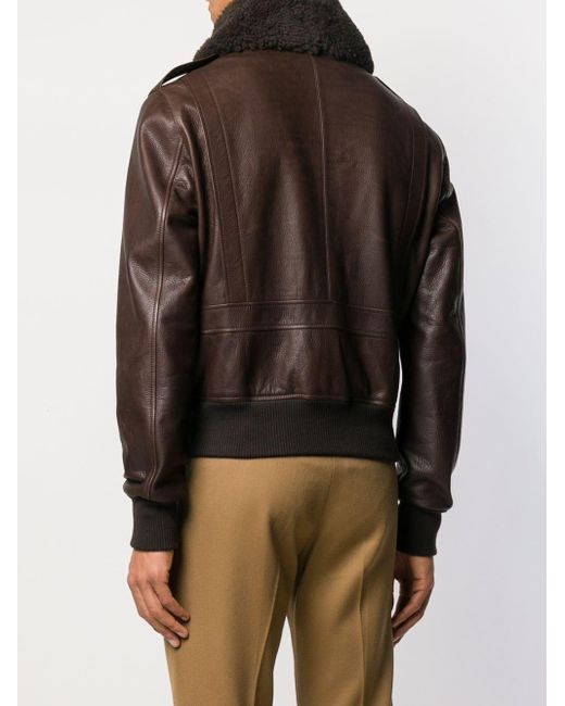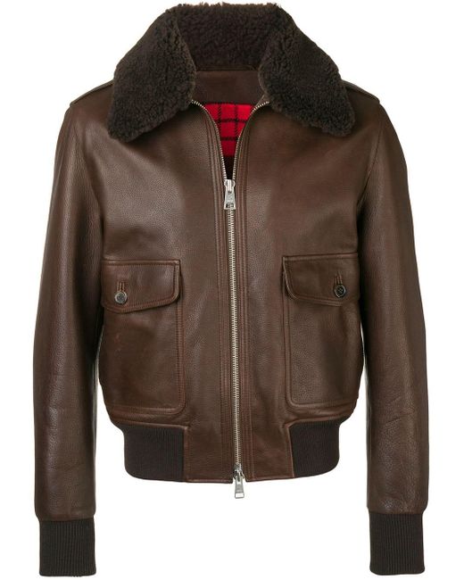 Blouson zippé col shearling AMI Alexandre Mattiussi avec coupe droite, ourlet et poignets nervurés, fermeture zippée devant, doublure et épaulettes. Couleur: marron. Coloris : marron