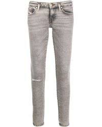 Coton denim, effet usé, logo, uni, lavage coloré, taille basse, fermeture sur l'avant, fermeture avec fermeture éclair et boutons, multipoches, bas effilé, tissu élastique, effet délavé, contient des parties non textiles d'origine animale, slim fit. 98% Coton, 2% Élasthanne. Coloris : gris