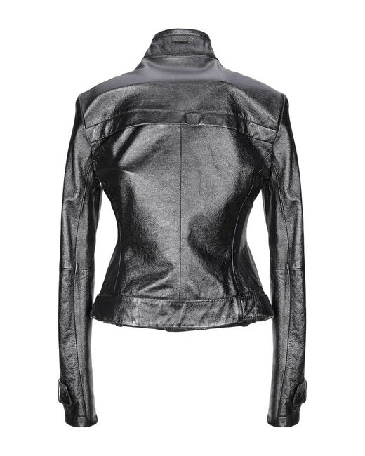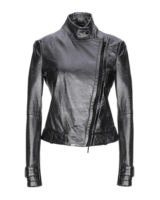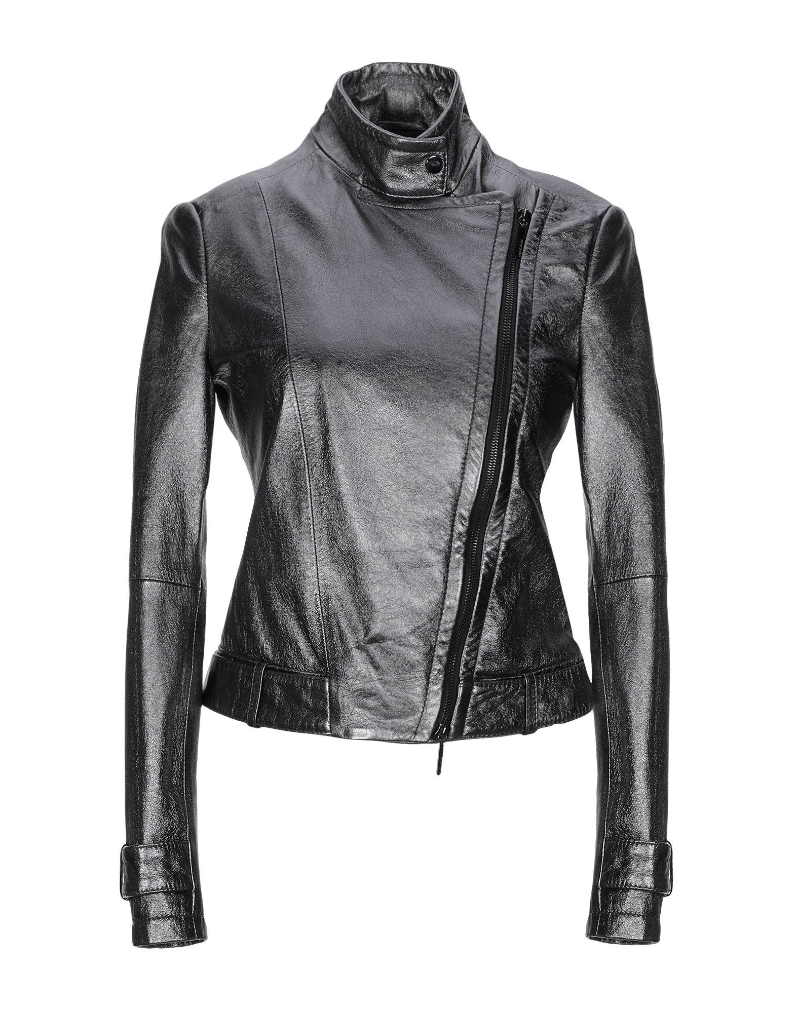 Cuir martelé, logo, effet laminé, uni, veste droite, zip, col roulé, sans poche, manches longues, poignets avec boutons-pression, intérieur entièrement doublé, contient des parties non textiles d'origine animale, cuir. 100% Cuir d'agneau. Coloris : gris