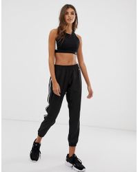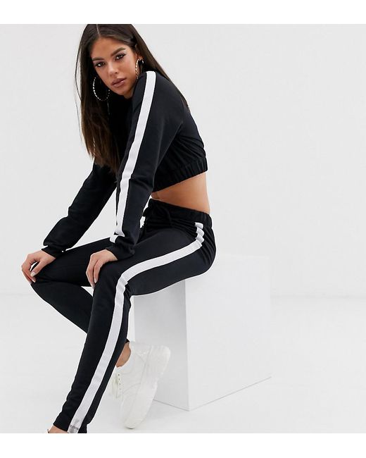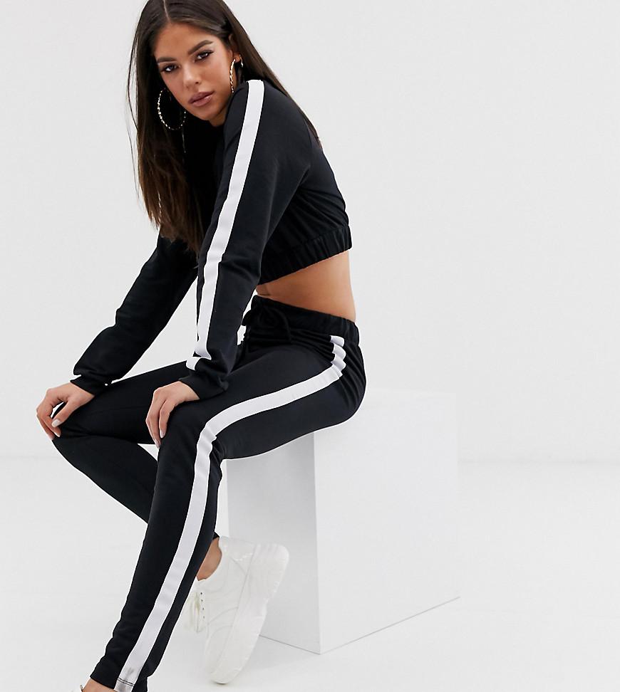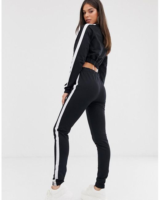 Ensemble confort avec sweat-shirt court et jogger à bandes latérales femme de coloris noir