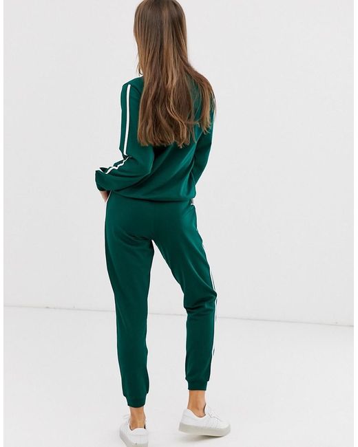 Joli survêtement avec sweat-shirt et pantalon de jogging basique avec lien et attaches contrastantes femme de coloris vert