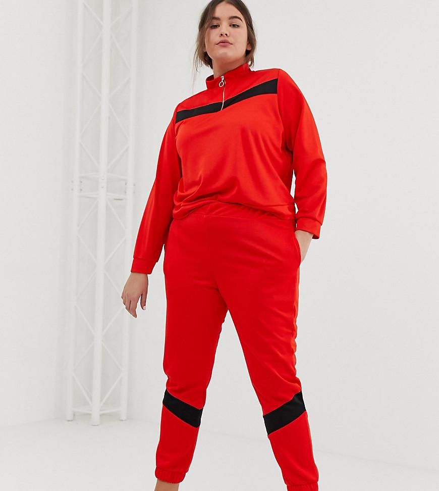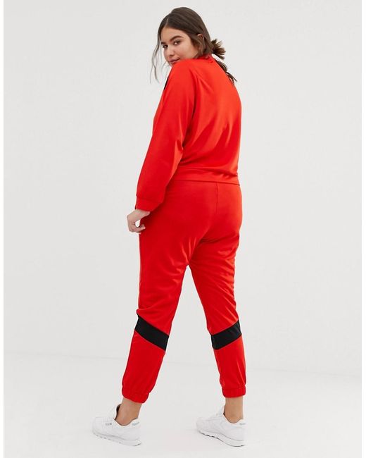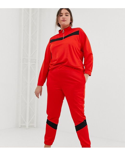 Survêtement en maille avec sweat à empiècements et jogger skinny femme de coloris rouge