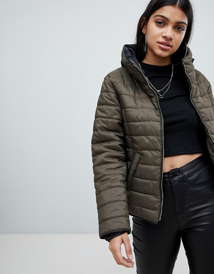 Veste matelassée avec encolure montante femme de coloris vert