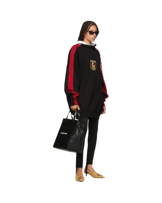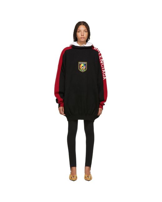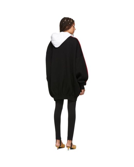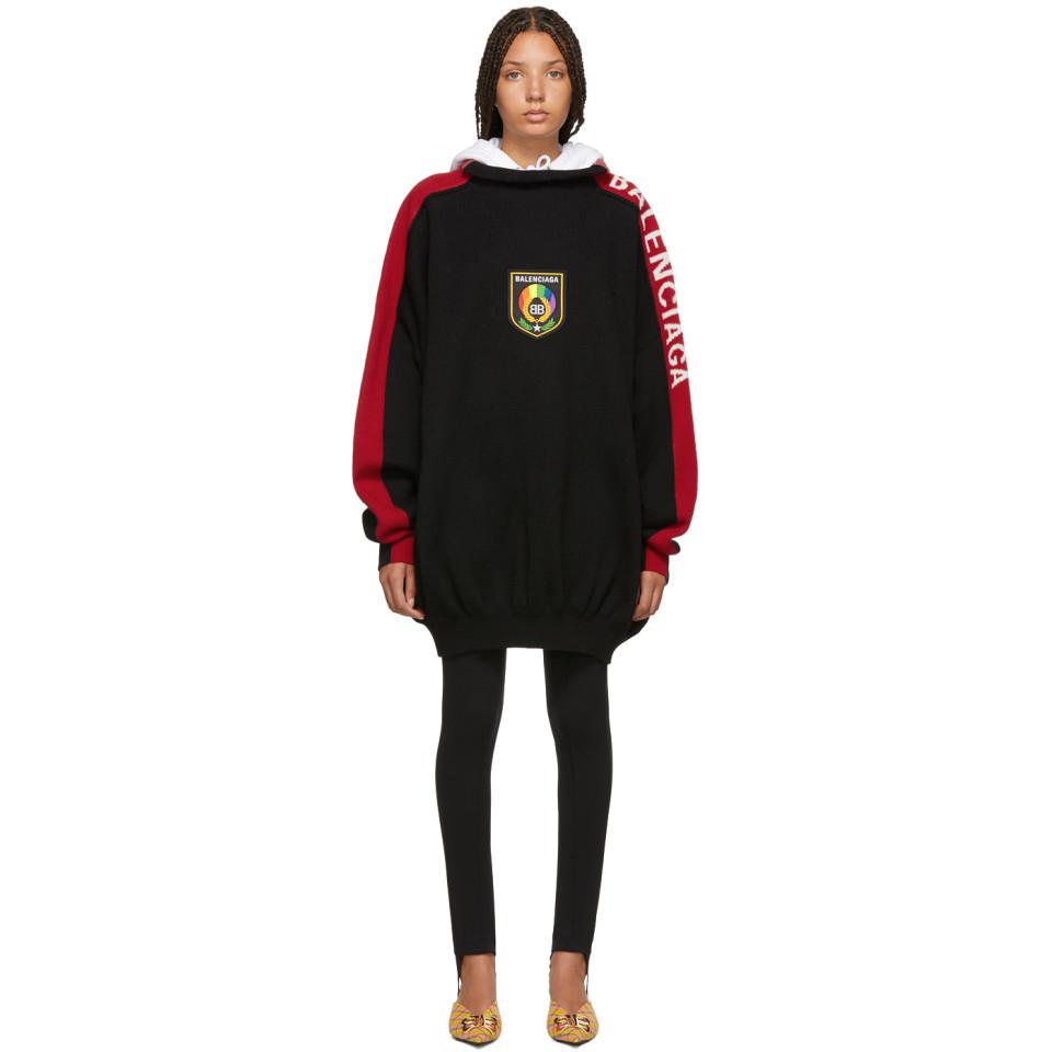 Pull a capuche et manches longues en maille de laine noir. Capuche en jersey de coton blanche. Cordon coulissant a la capuche. Applique en tissu ton sur ton a logo et images multicolore brodes au buste. Rayures rouges aux manches et aux revers en maille cotelee. Logo en maille blanc a la manche. Coutures ton sur ton. Coloris : noir