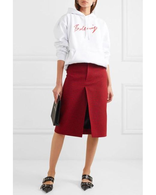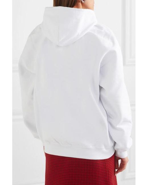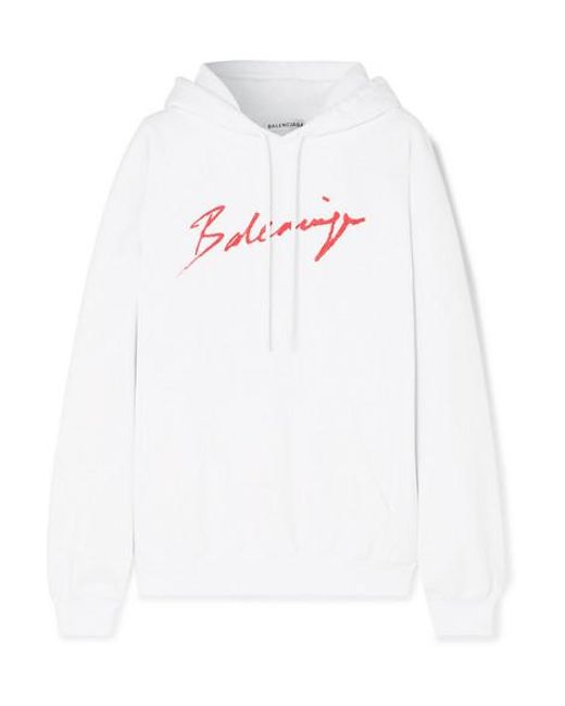 Demna Gvasalia n'en est pas à son coup d'essai en matière de streetwear et il est donc normal que la pré-collection automne 2019 de Balenciaga regorge de sweats à capuche oversize et ultra-confortables. Ce modèle est réalisé en jersey de coton doux blanc et imprimé du logo de la maison, comme écrit au rouge à lèvres. Associez-lui une jupe de tailleur pour équilibrer sa coupe décontractée. Idées de tenues : jupe Balenciaga, pochette Balenciaga, mules Balenciaga, boucles d'oreilles Balenciaga. Jersey de coton blanc et rouge. S'enfile simplement. 100 % coton. Lavage à la main.