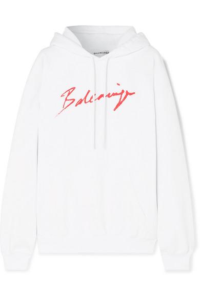 Balenciaga féminise un modèle traditionnellement androgyne, le sweat-shirt à capuche, en l'ornant de son logo rouge vif, comme esquissé avec un baton de rouge à lèvres.