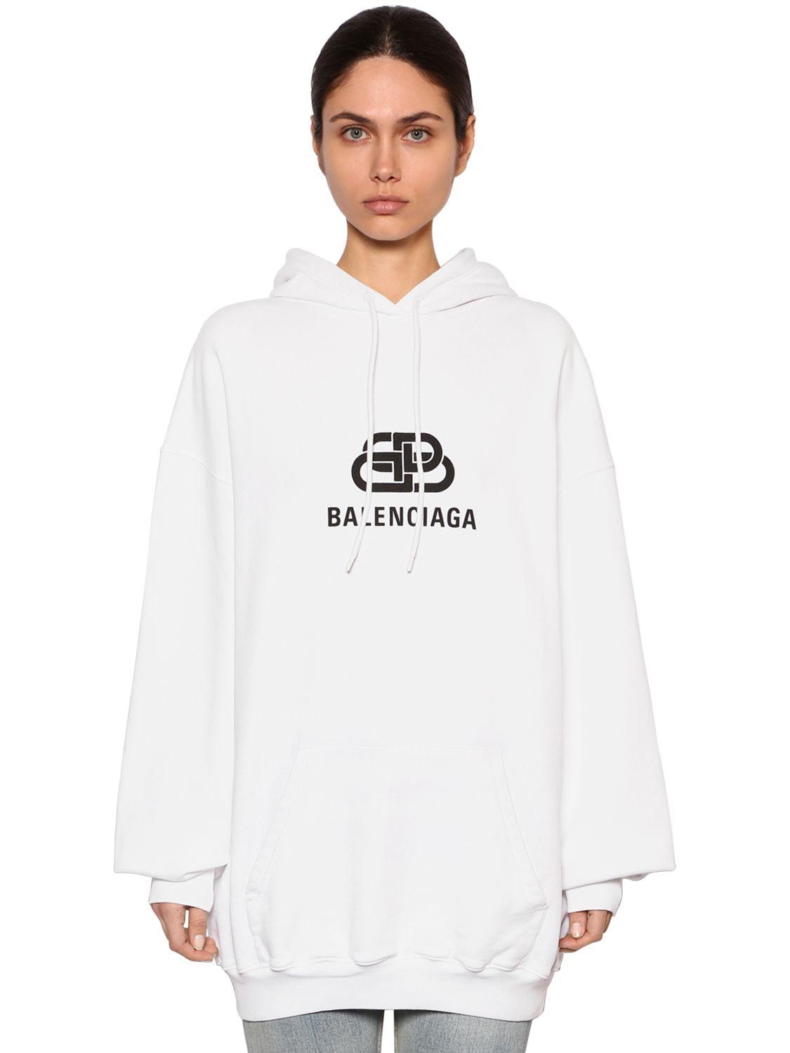 Sweat Oversize En Coton À Capuche femme de coloris blanc