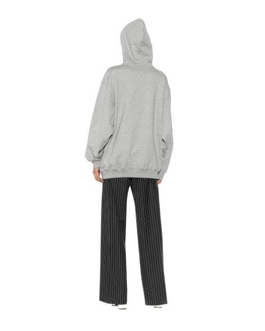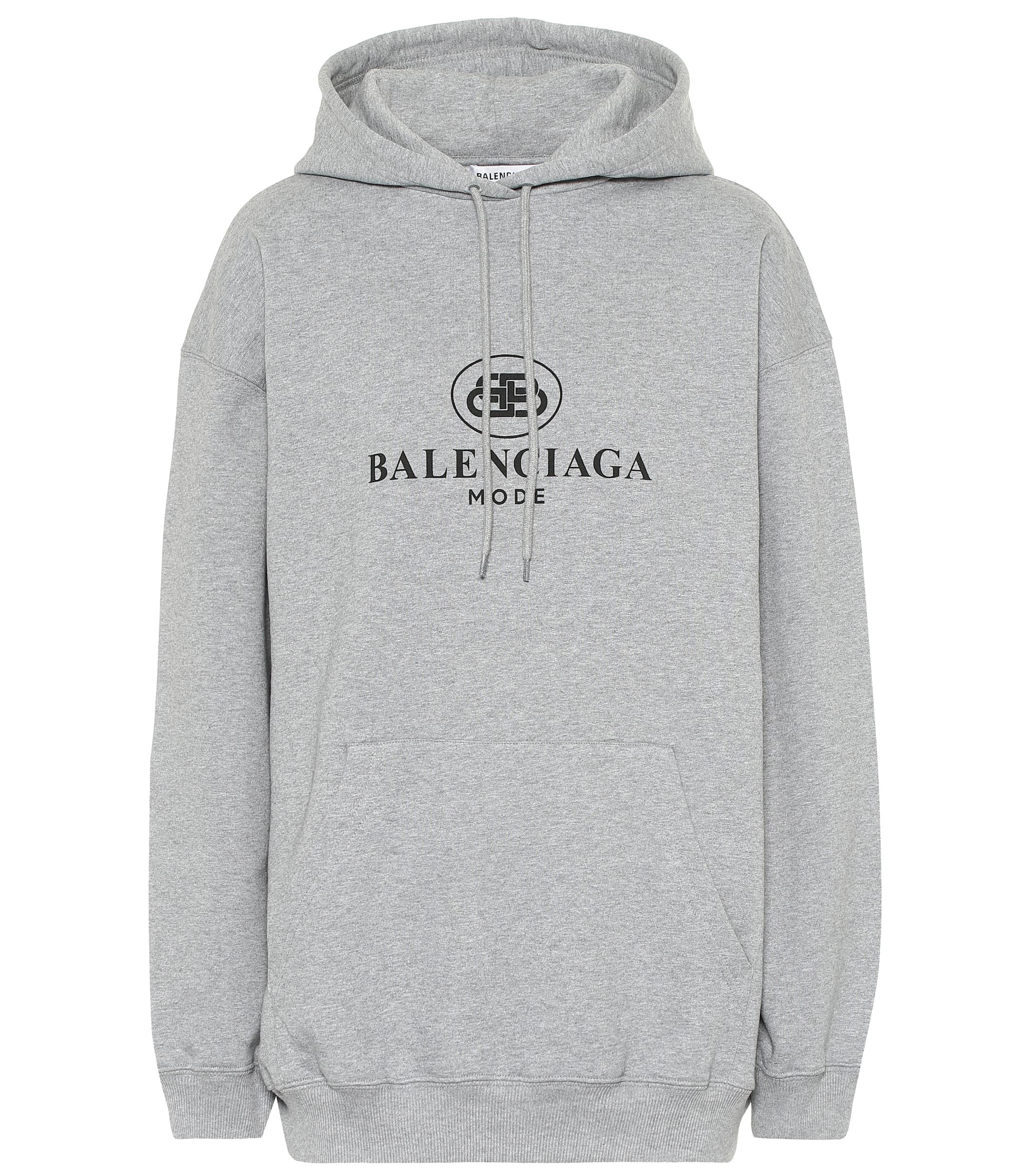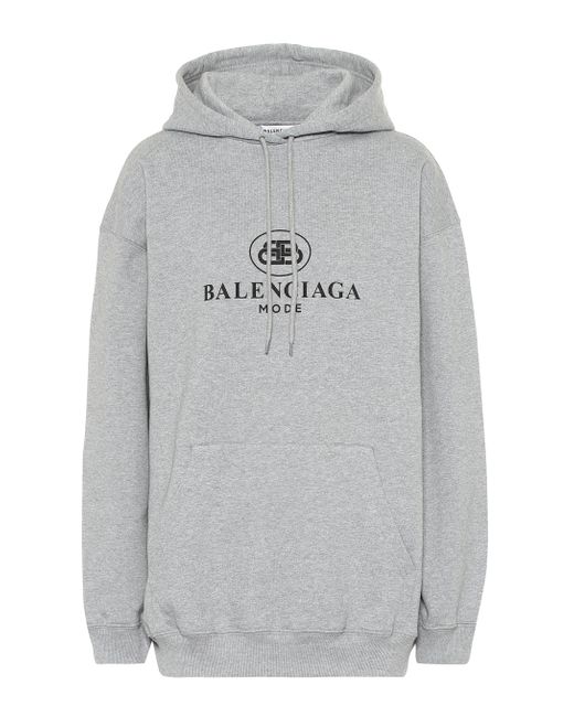Pourvu d'une coupe oversize à capuche, poche manchon et emmanchures basses, ce sweat-shirt en coton gris chiné est signé Balenciaga, comme l'atteste le logo à double B entrelacé, souligné du nom de la maison. Coloris : gris
