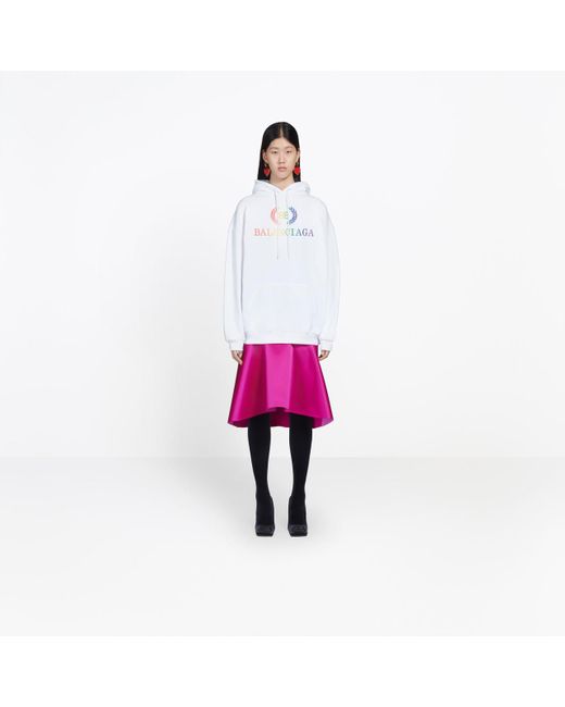 Sweatshirt à capuche blanc brodé BB Balenciaga. Coton molleton Coupe oversize. 1 poche kangourou. Capuche à lien coulissant. Broderie multicolore bb balenciaga devant. Fabriqué au portugal. Lavage à la main. Le mannequin mesure 178 cm et porte une taille fr s. 100% coton. Coloris : multicolore