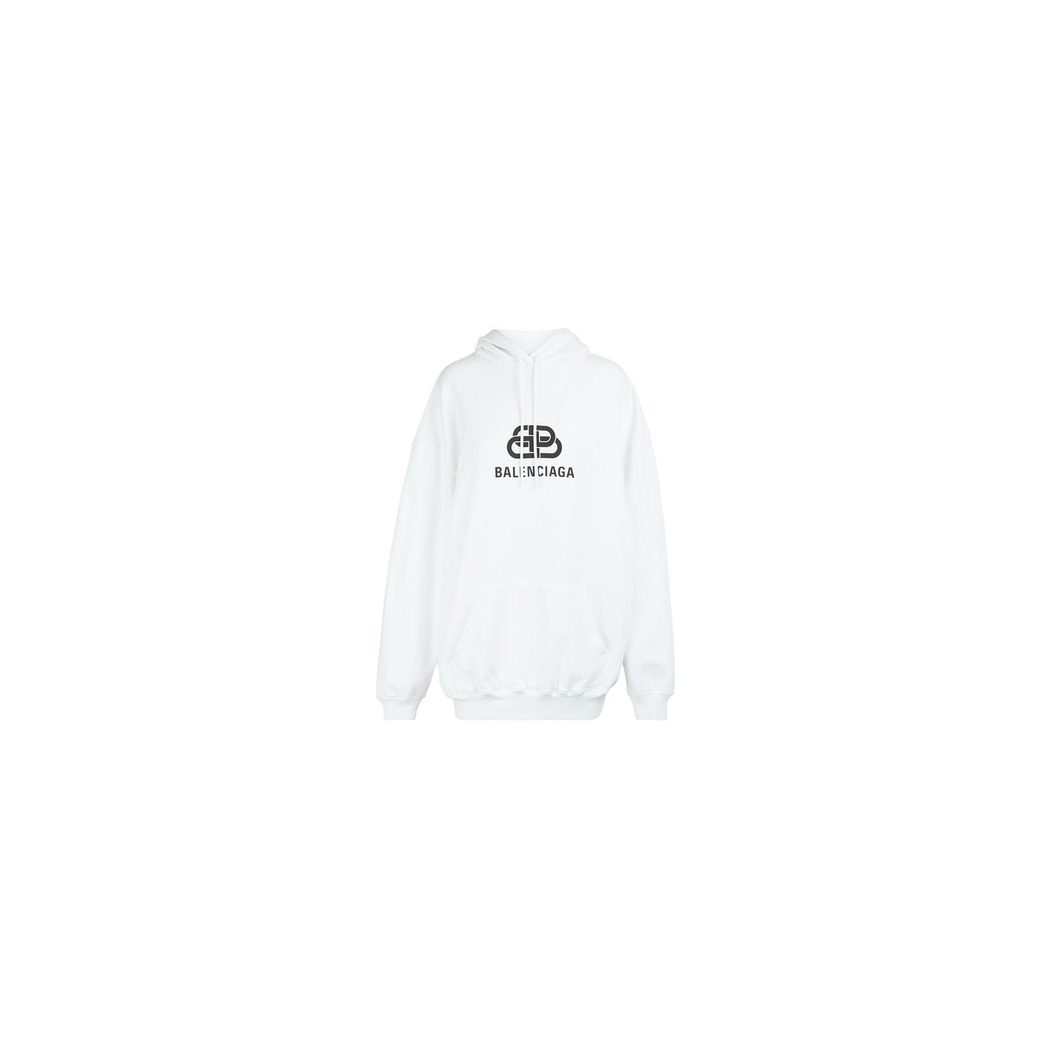 Orné du logo de la Maison Balenciaga, le Sweatshirt New BB à capuche en molleton bouclette offre ses lettres de noblesse au vêtement de sport. Coloris : blanc
