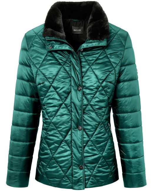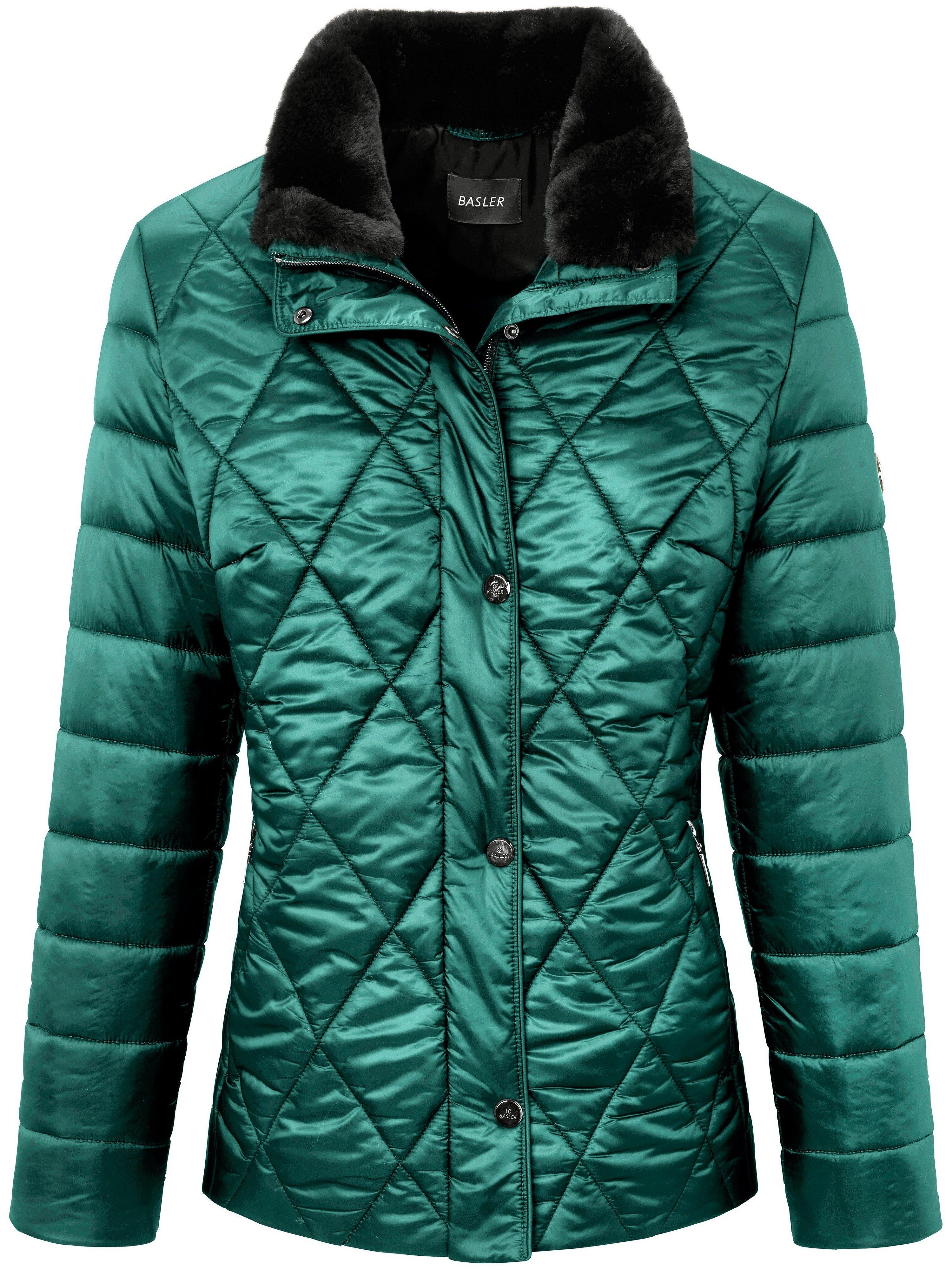 La veste matelassée Basler. Le modèle Mode & Chic BASLER le plus chaleureux de l'hiver, coupée dans une belle microfibre brillante surpiquée fantaisie. Intérieur du col garni de douce fausse fourrure. 100% polyester. Ouatinage Thermofleece ultra léger et bien chaud, respirant et vite sec. Fermeture par zip fermé haut sous patte de boutons-pression, 2 poches dans les coutures et poche intérieure zippées. Tissu et doublure 100% polyamide. Longueur env. 66 cm. La veste matelassée est lavable en machine. Lavage machine cycle délicat 30°. Décoloration au chlore impossible. Repassage (très) chaud interdit. Nettoyage P (tous les solvants sauf le Trichloréth. Pas de séchage tambour). 38, 40, 42, 44, 46, 48, 50, 52, 54. 100% polyamide. Coloris : vert