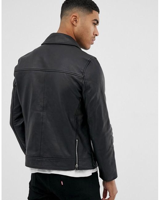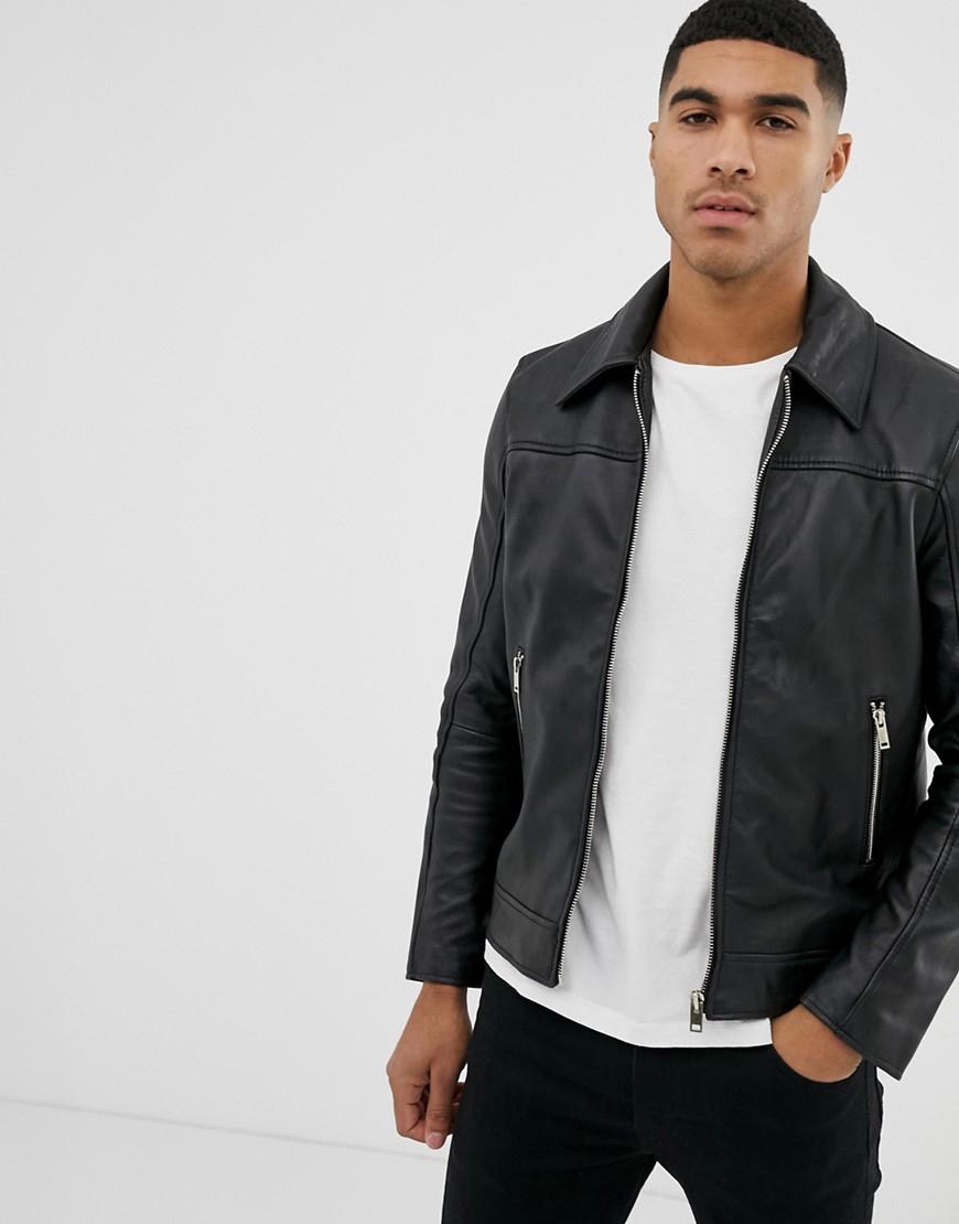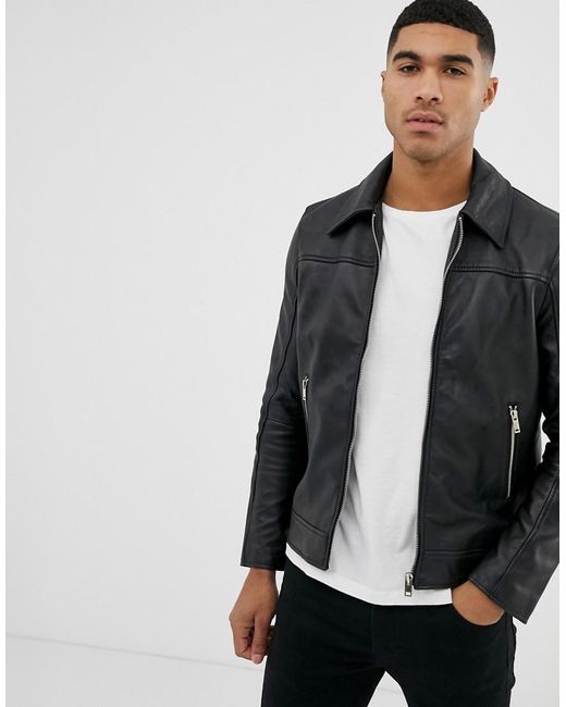 Veste en cuir ajustée homme de coloris noir
