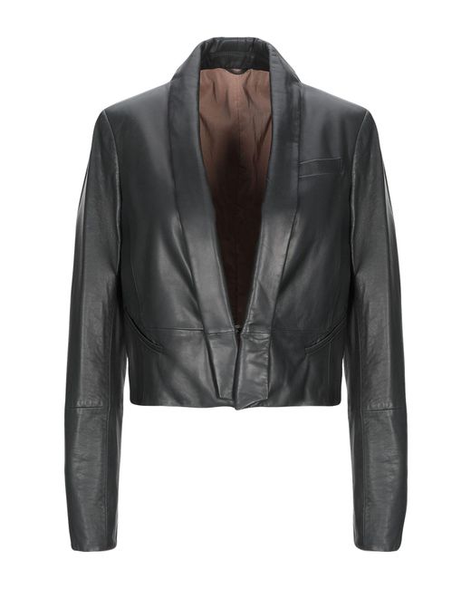 Cuir, sans applications, uni, multipoches, fermeture avec boutons, col avec revers, veste droite, manches longues, intérieur entièrement doublé, contient des parties non textiles d'origine animale. 100% Cuir. Coloris : gris