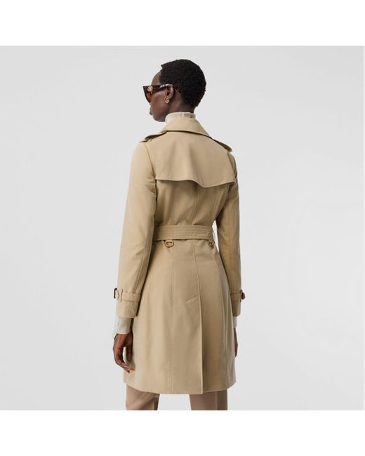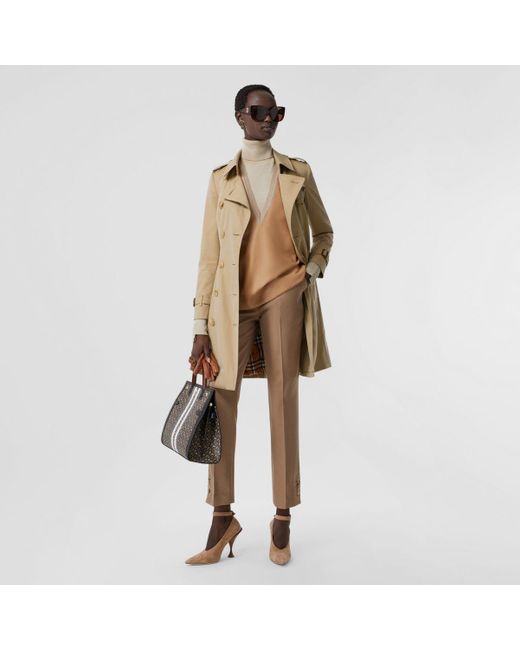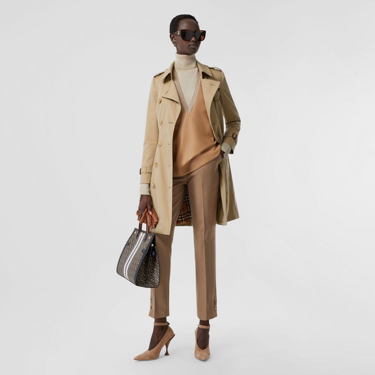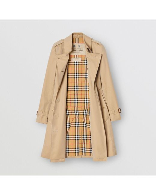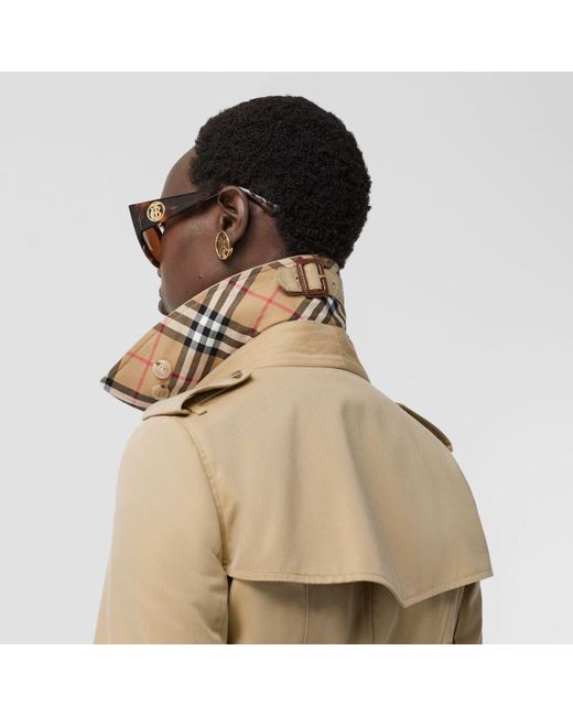 Confectionné en Angleterre dans notre gabardine de coton signature, ce trench-coat de coupe slim est revisité avec des épaules marquées et une taille cintrée. Doté d'une doublure ainsi que d'un dessous de col à motif Vintage check, l'imperméable inspiré de nos archives est ceinturé à la taille pour souligner sa silhouette légèrement évasée. Les retouches sont proposées par nos boutiques. Pour en savoir plus, veuillez consulter notre FAQ en ligne. Longueur du manteau : 94,5 cm. Il s'agit d'une 6 (UK). Les proportions changent légèrement en fonction de la taille. Taille du mannequin : 179 cm. Endroit : 100 % coton. Doublure à motif Vintage check : 100 % coton. Doublure des manches : 100 % viscose. Boutons : corne de buffle. Boucles : cuir de veau. Fermeture à double boutonnage. Poches gilet boutonnées. Détails emblématiques : pattes d'épaule, fermeture par agrafe au col, bavolet revolver, pattes de serrage, ceinture à boucle en D, dessous de col à motif check, bavolet tempête. Nettoyage à sec chez un spécialiste. Article fabriqué en Angleterre. Coloris : neutre