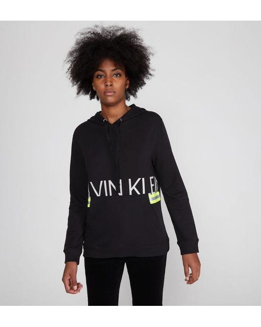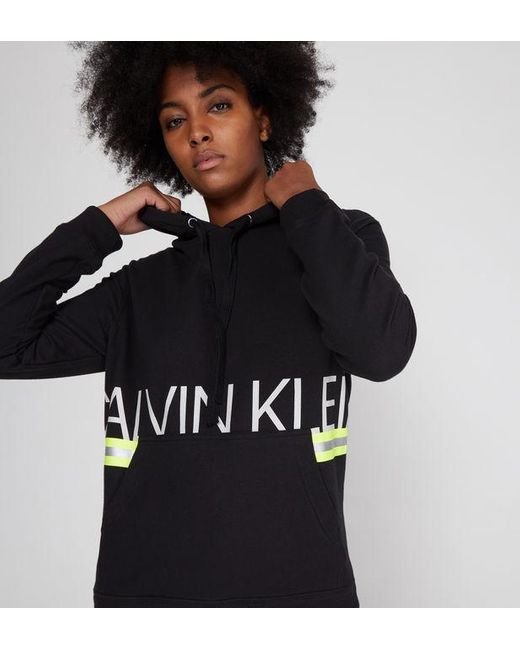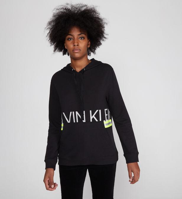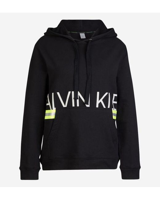 Ce sweat molletonné Calvin Klein est muni d'une capuche resserrable, d'une poche kangourou, d'une signature avant et de bandes rayées fluos. Les finitions sont côtelées. Coloris : noir