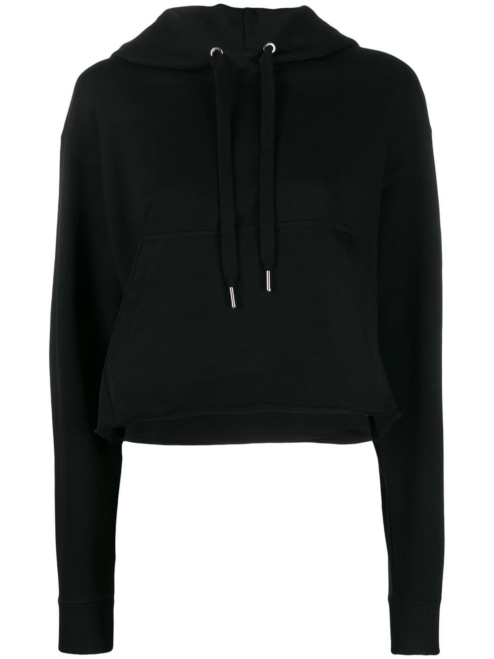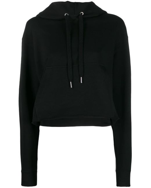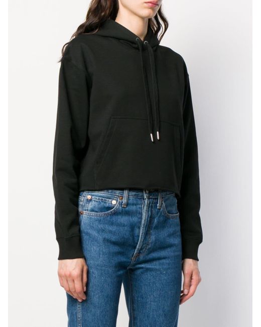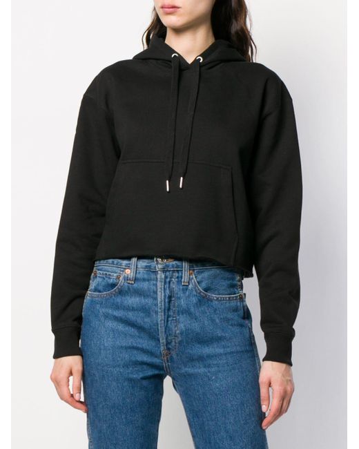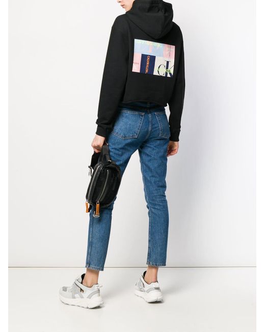 Sweat à capuche crop à logo en coton mélangé Calvin Klein Jeans avec capuche à lien de resserrage, effet d'épaules descendues, manches longues et poche kangourou. Couleur : noir. Coloris : noir