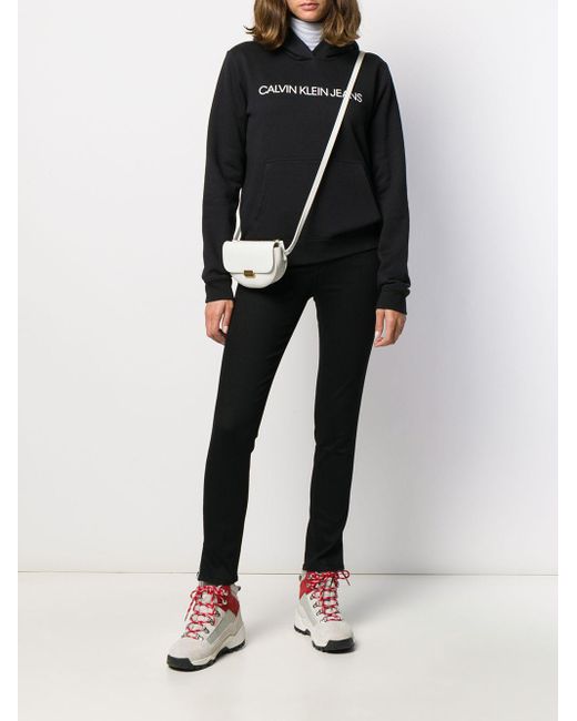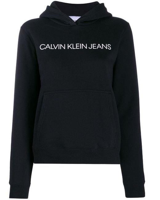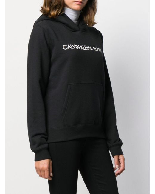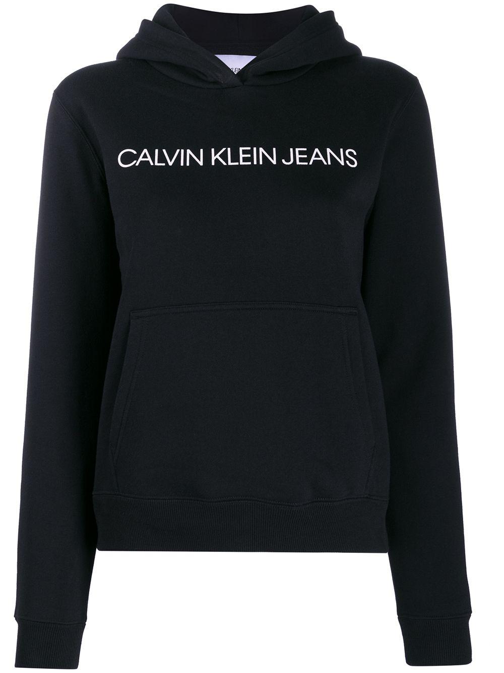 Sweat à capuche à logo imprimé en coton mélangé Calvin Klein avec coupe slim, logo imprimé sur le devant, capuche, manches longues et ourlet et poignets nervurés. Coloris : noir