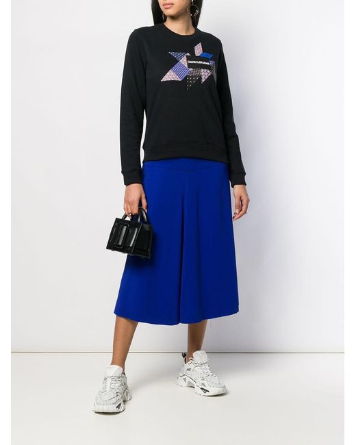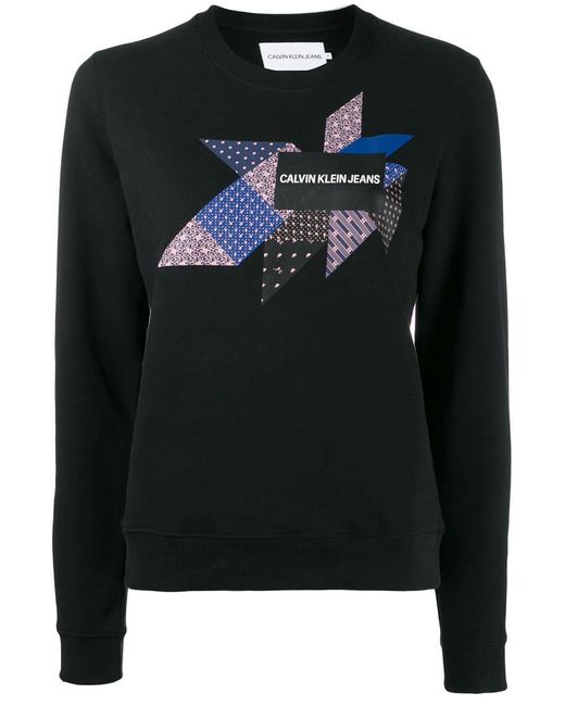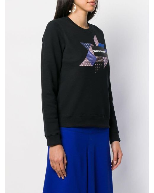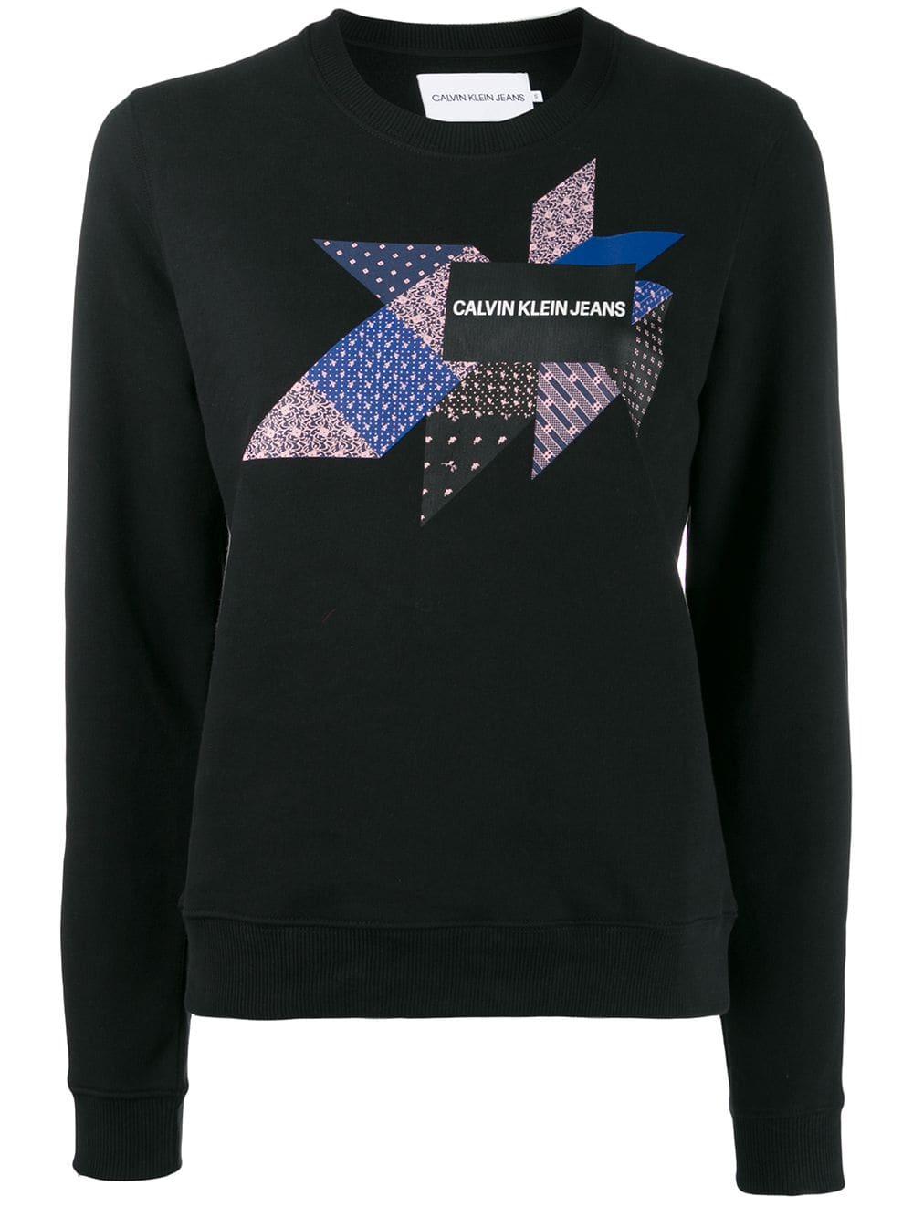 Sweat à imprimé graphique et logo en coton Calvin Klein Jeans avec encolure ras du cou, manches longues et ourlet droit. Couleur : noir. Coloris : noir