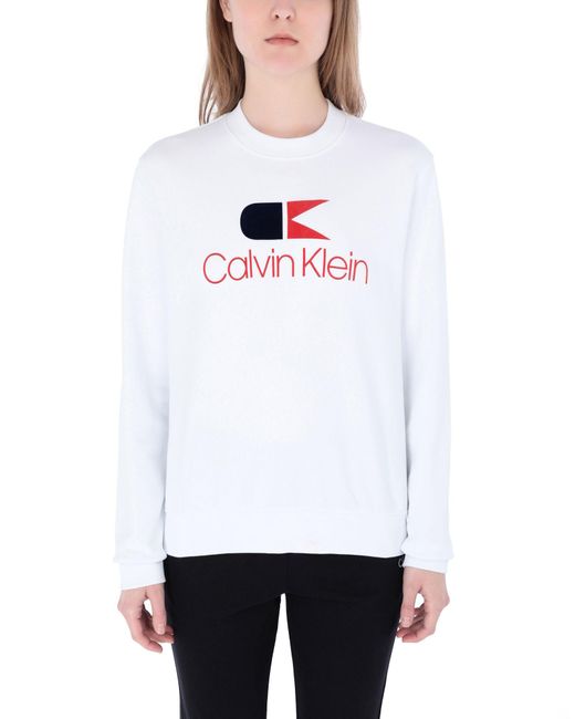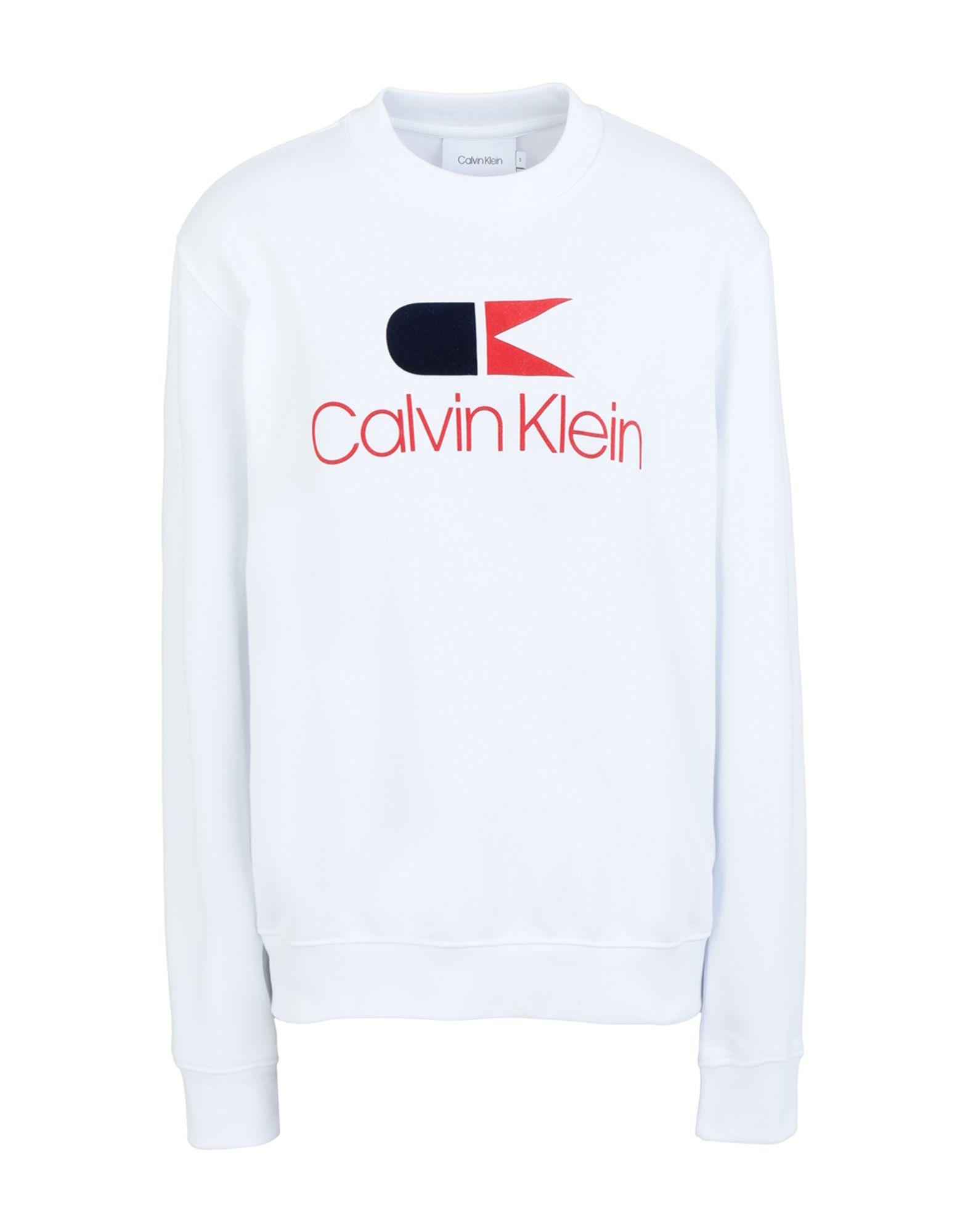 Sweat à logo imprimé en coton Calvin Klein avec encolure ras du cou, logo imprimé sur le devant, manches longues et ourlet et poignets nervurés. Couleur : blanc.