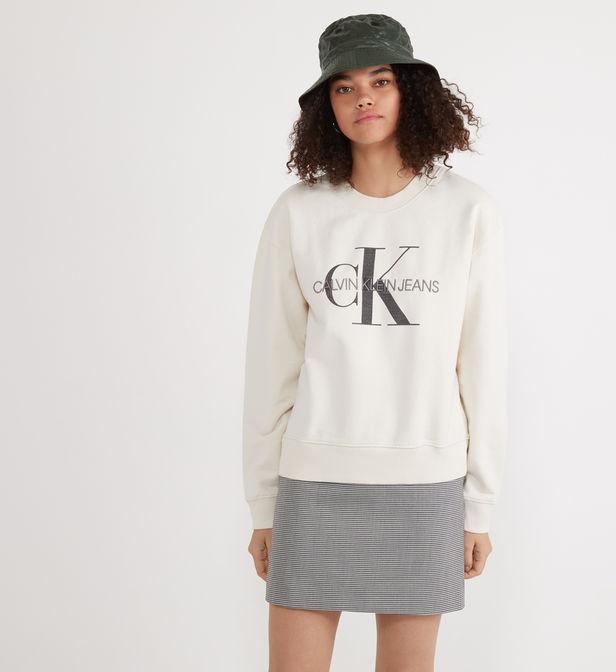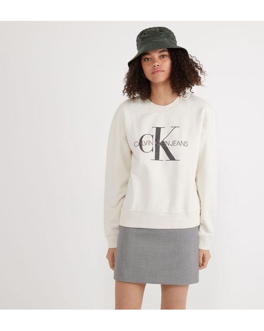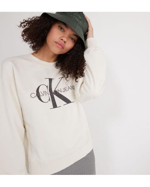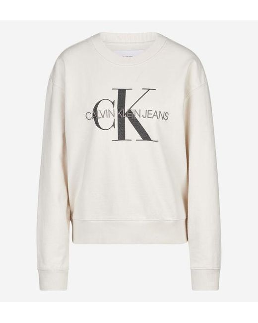 Ce sweat droit Calvin Klein en coton blanc est muni d'un col rond, de manches longues, d'une broderie contrastante siglée sur la poitrine et de finitions côtelées. Coloris : blanc