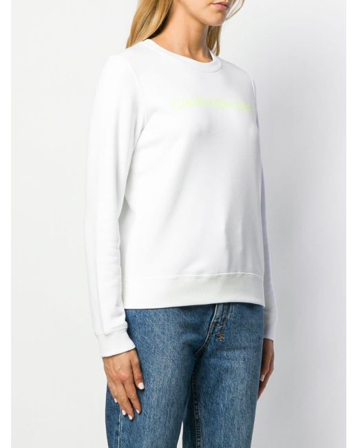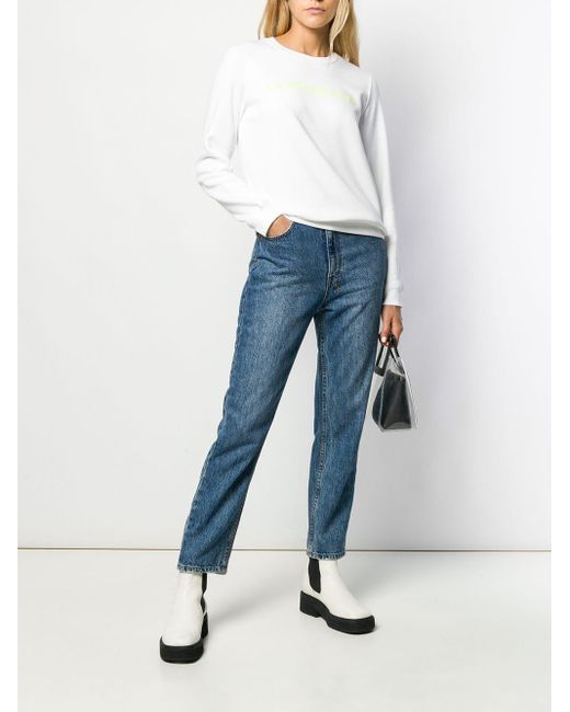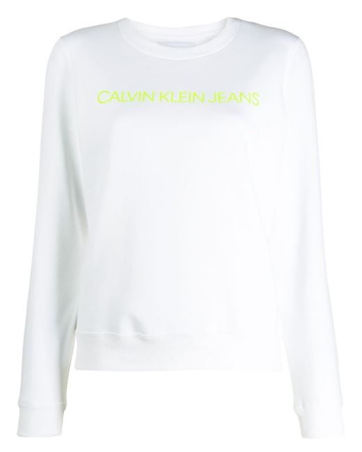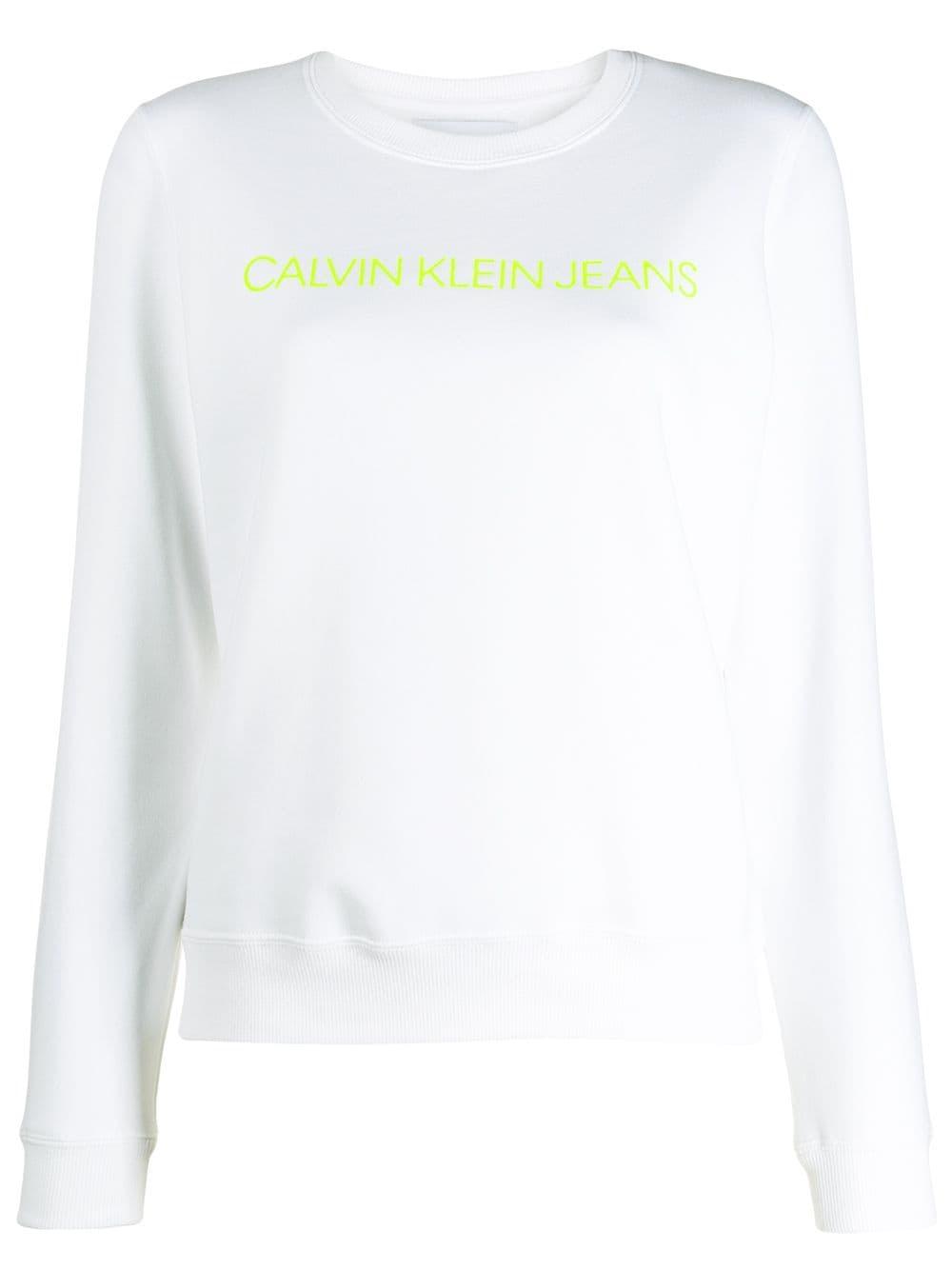 Sweat Institutional à logo Calvin Klein Jeans avec encolure ras du cou nervurée, manches longues, ourlet et poignets nervurés, ourlet droit et forme détendue. Coloris : blanc