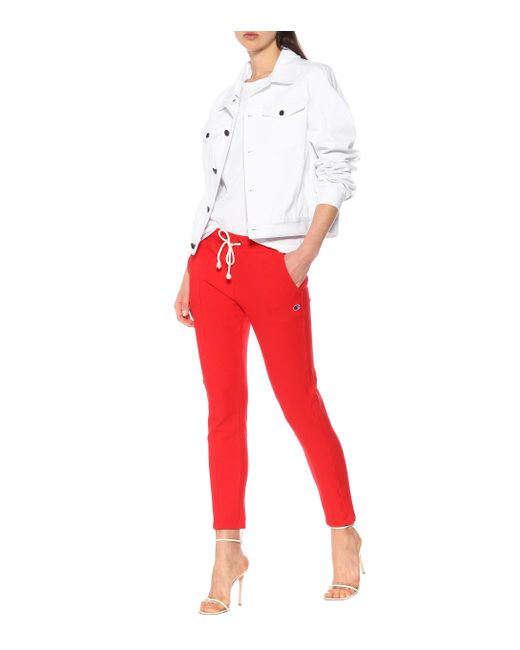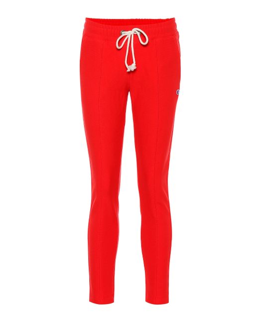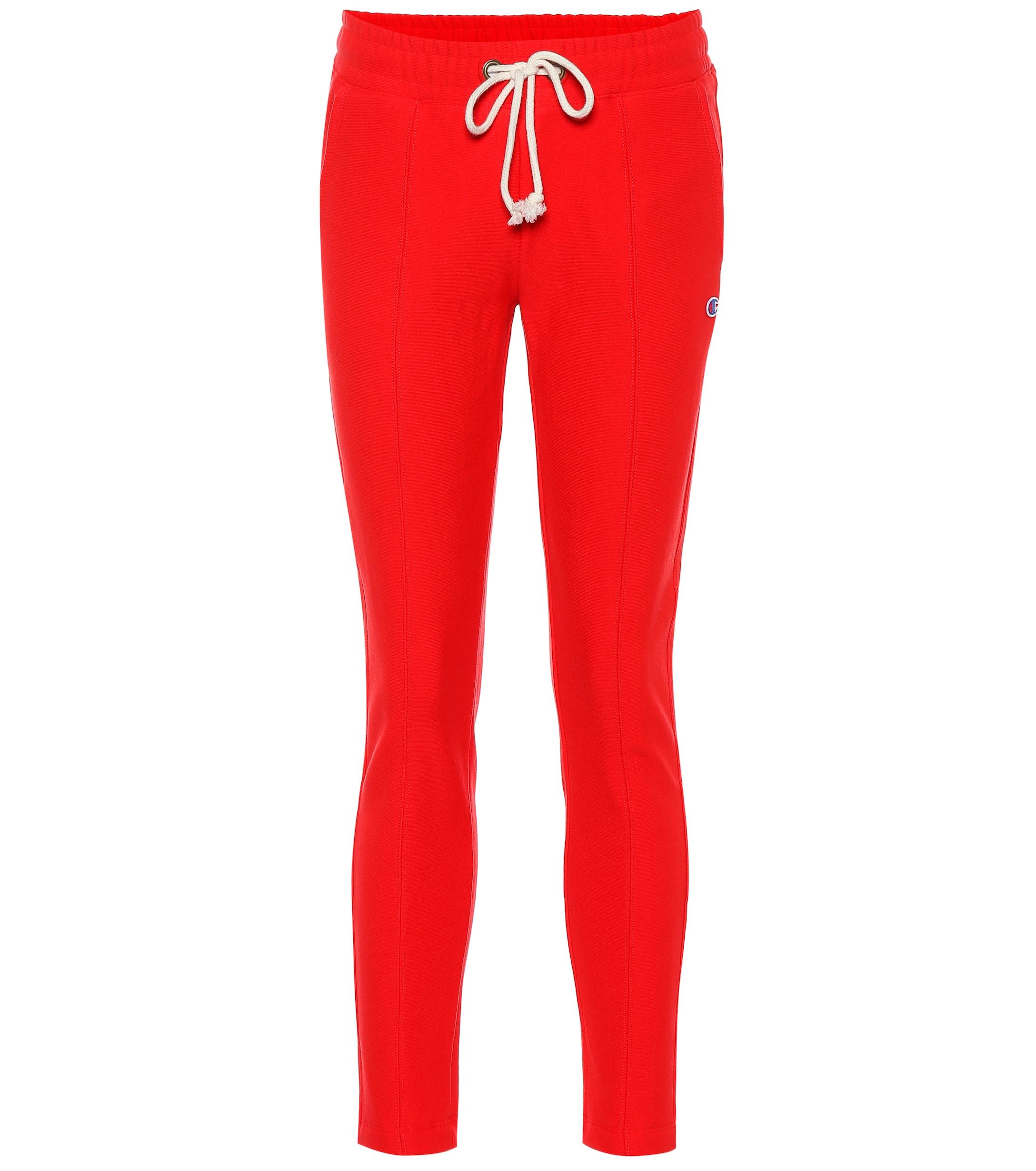 Parfait pour un jogging matinal, ce pantalon de survêtement rouge vif en jersey de coton stretch vous est offert par le label Champion. Coloris : rouge