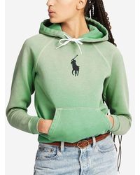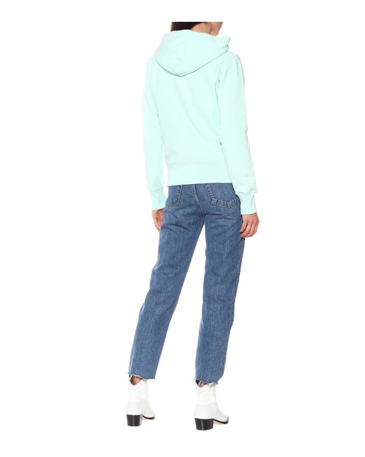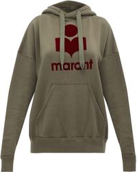 Sweat-shirt à capuche en coton brodé femme de coloris vert