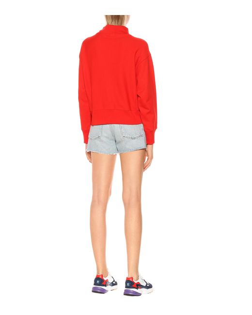 Sweat-shirt en coton brodé femme de coloris rouge