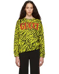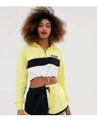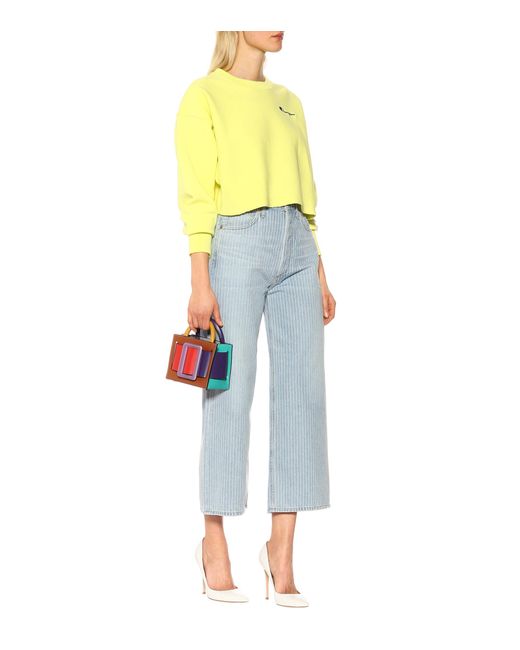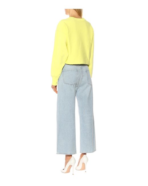 Sweat-shirt raccourci en coton brodé femme de coloris jaune