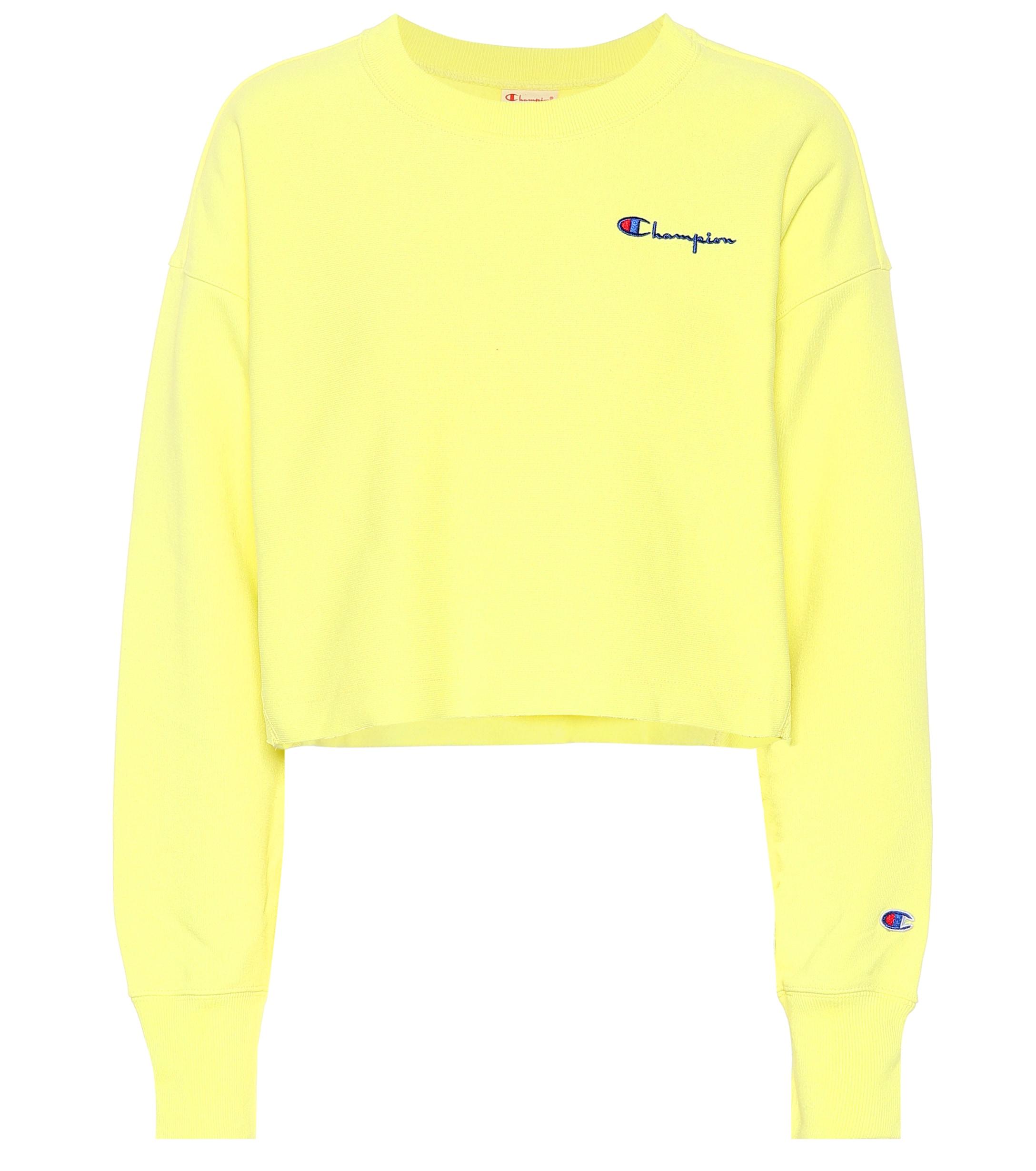 Champion, label culte des années 80/90, fête son grand retour en signant ce sweat-shirt en coton jaune pastel, discrètement brodé du logo sur la poitrine et la manche droite. Coloris : jaune