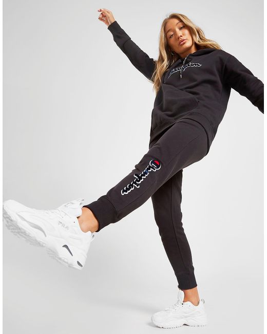 Exclusive to JD. Bring out the retro style and make a statement on your off-duty days with these women's Logo Joggers from Champion. In a black colourway, these joggers are made from soft cotton for an ultra-comfy and chilled out wear. Coming in a regular fit, they have ribbed trims for a secure wear, while the two side pockets give you space for essentials. Ideal for reppin' with a tonal hoodie, these joggers are finished with Champion branding in white and red to the left leg. Our model is 5'8" and wears a size small. Coloris : noir