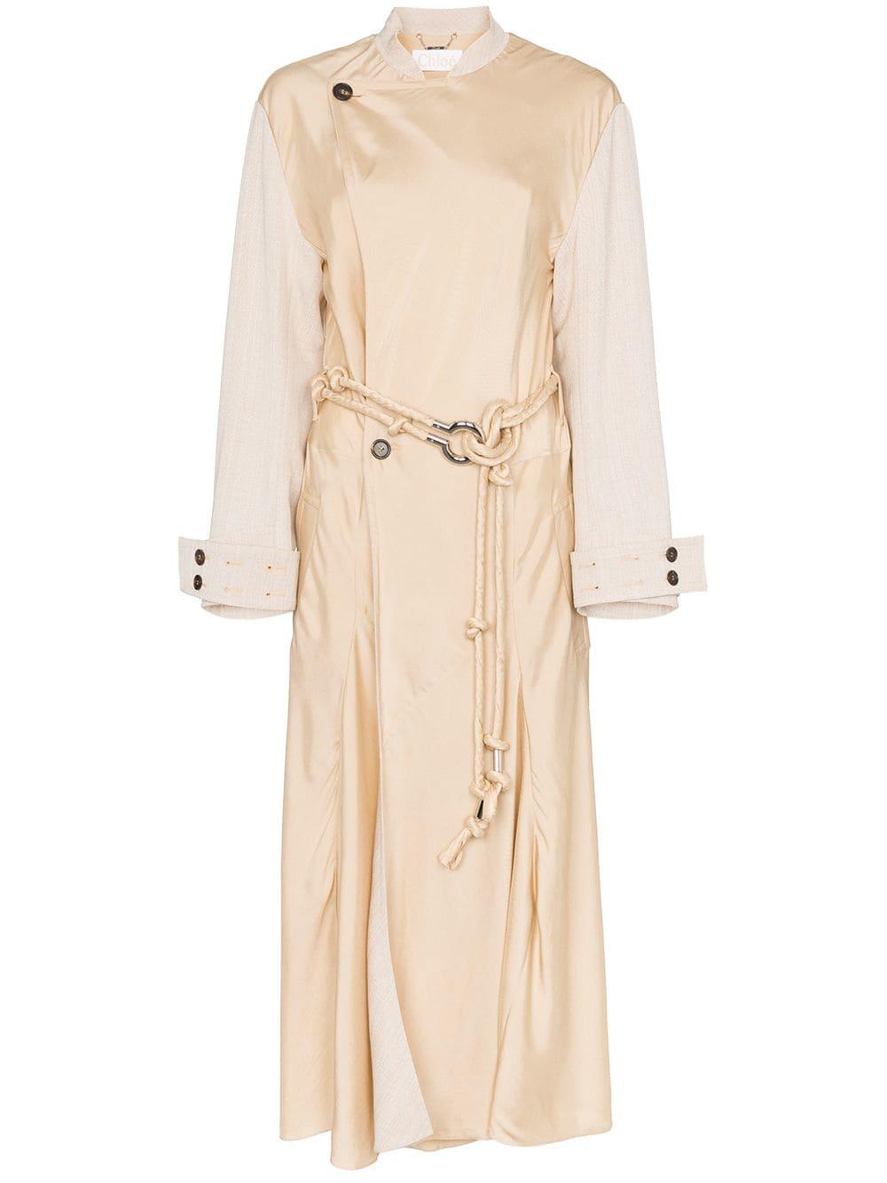 Trench à effet drapé Chloé avec col montant, effet d'épaules descendues et manches longues. Coloris : neutre
