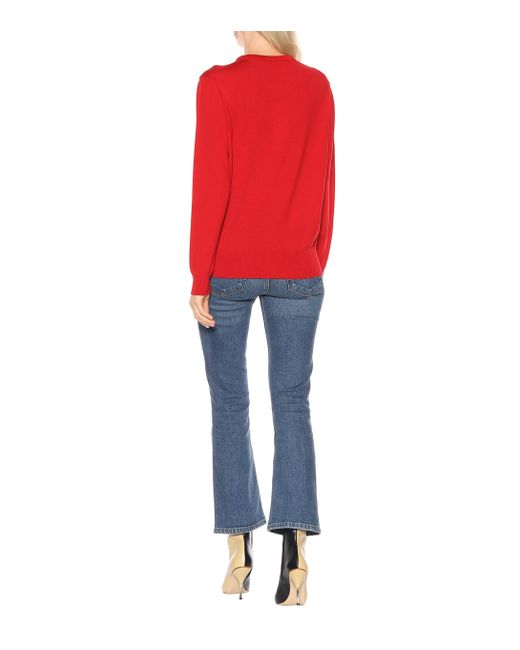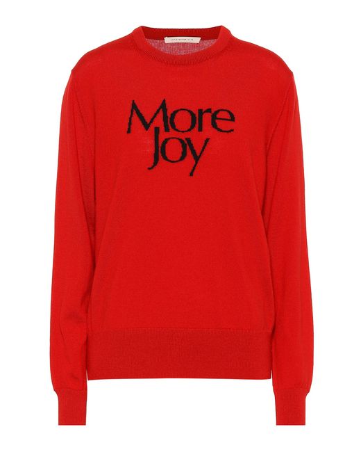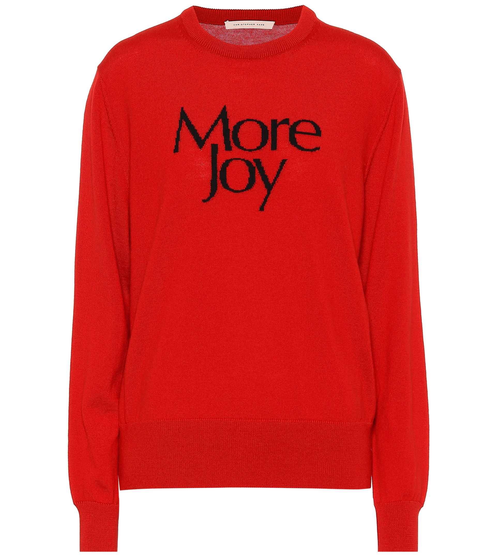 Agrémenté en lettres intarsia noires de la mention « More Joy », ce luxueux pull rouge vif signé Christopher Kane a été fabriqué en Italie en une douce maille de laine. Coloris : rouge