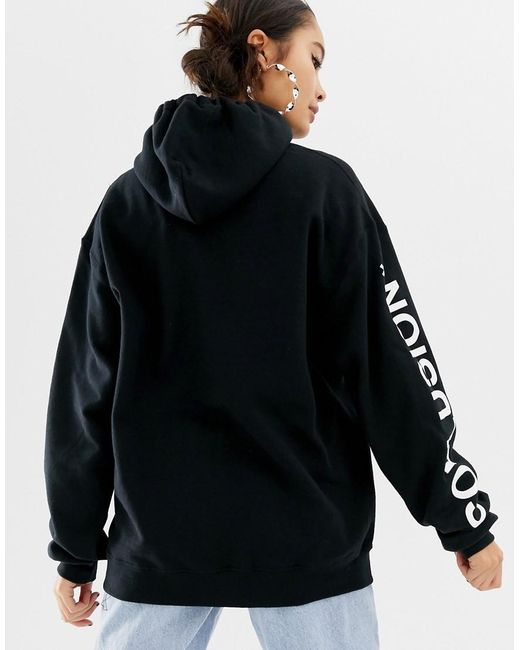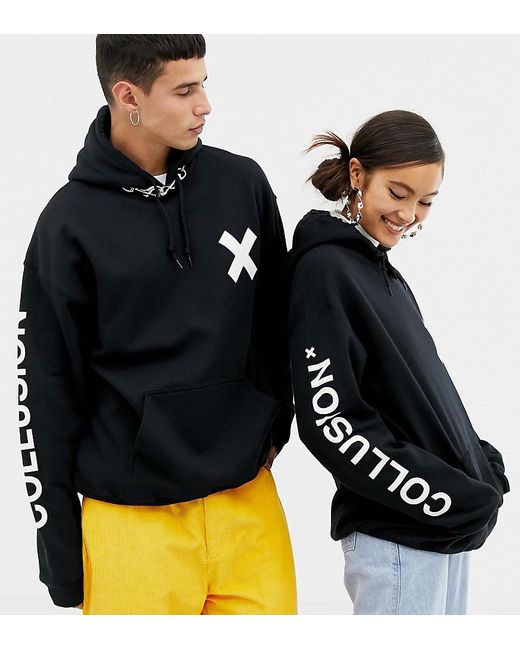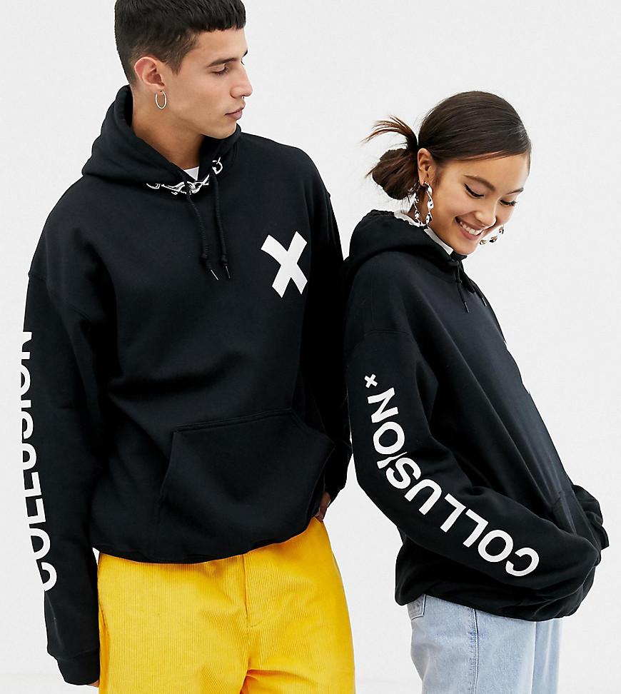 Hoodie par COLLUSION, Une pièce incontournable, Capuche à cordon de serrage, Impression du logo, Poches ventrales, Bordures ajustées, Coupe classique, Pas trop ample, pas trop serré, Modèle unisexe, Adapté à toutes les morphologies. COLLUSION est une nouvelle marque pour la génération Z qui refuse les compromis sur les principes ou le style. Son crédo : les vêtements qui mettent à l'honneur l'expression personnelle et l'inclusivité devraient être la norme. Ce n'est donc pas surprenant qu'elle soit associée à six créateurs inspirants qui ont façonné sa première collection, dans laquelle on compte notamment des articles en jean, des pulls, des robes et bien plus encore. Cordon/ coton/ jean/ molleton/ or/ polyester. Coloris : noir