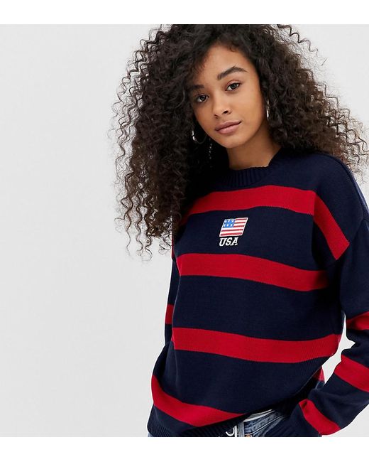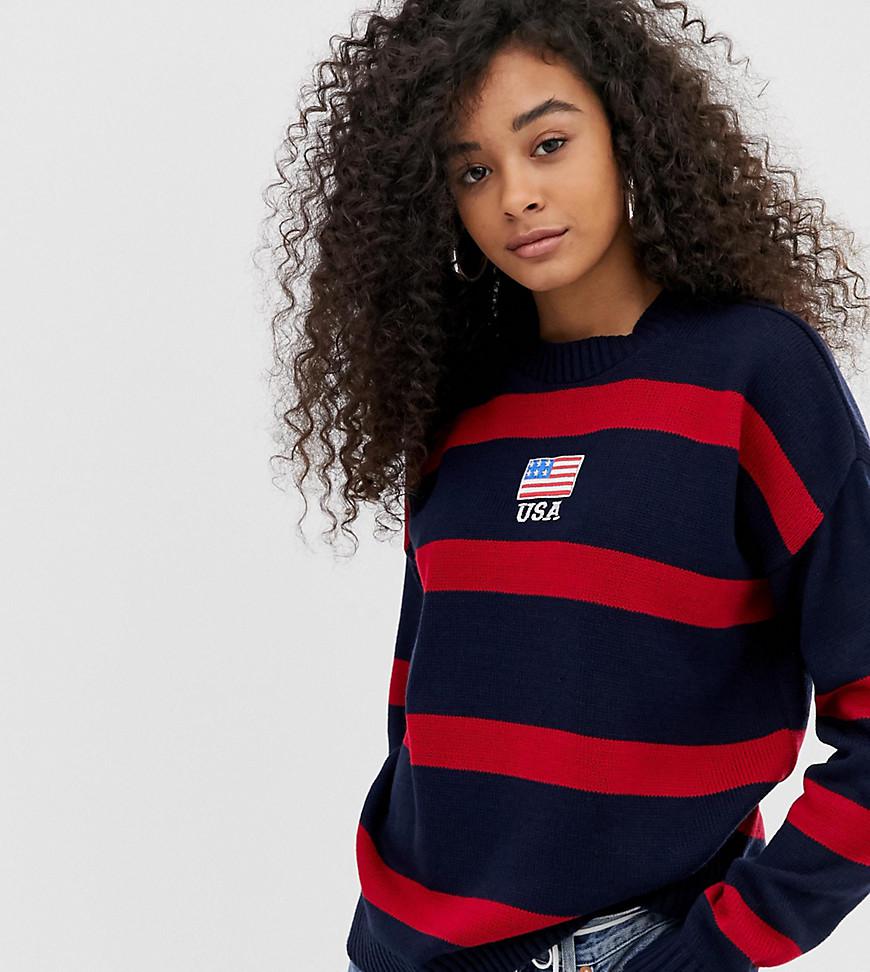 Pull avec broderie USA et manches contrastantes femme de coloris noir