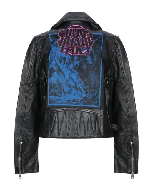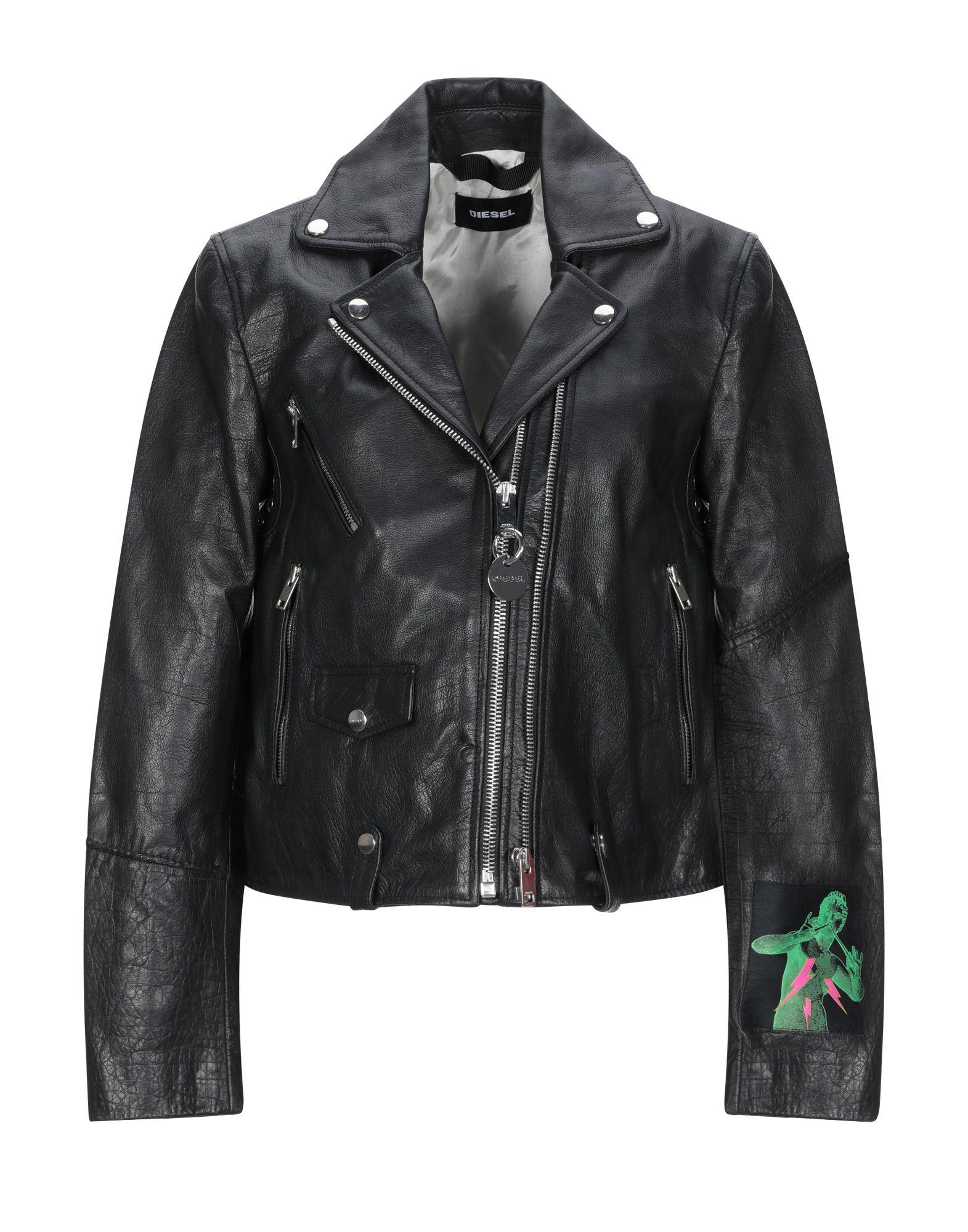 Satin, cuir, logo, applications contrastées, uni, veste droite, zip, col avec revers, multipoches, manches longues, intérieur entièrement doublé, contient des parties non textiles d'origine animale. 100% Cuir de veau. Coloris : noir